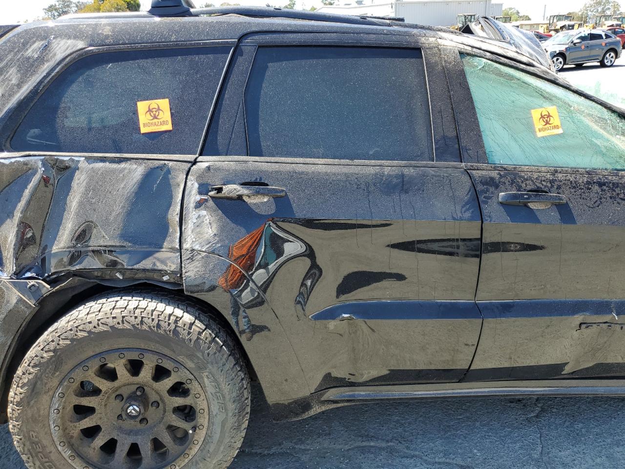 PoorThe 2019 JEEP GRAND CHEROKEE OVERLAND, black in color, has suffered significant damage consistent with a rollover incident. The vehicle's exterior exhibits extensive damage, including a crushed roof, damaged body panels, and compromised glass. The wheels appear to be in decent condition. The interior shows deployed airbags, indicating a high-impact collision. The vehicle's overall condition suggests it requires substantial repairs to be drivable.