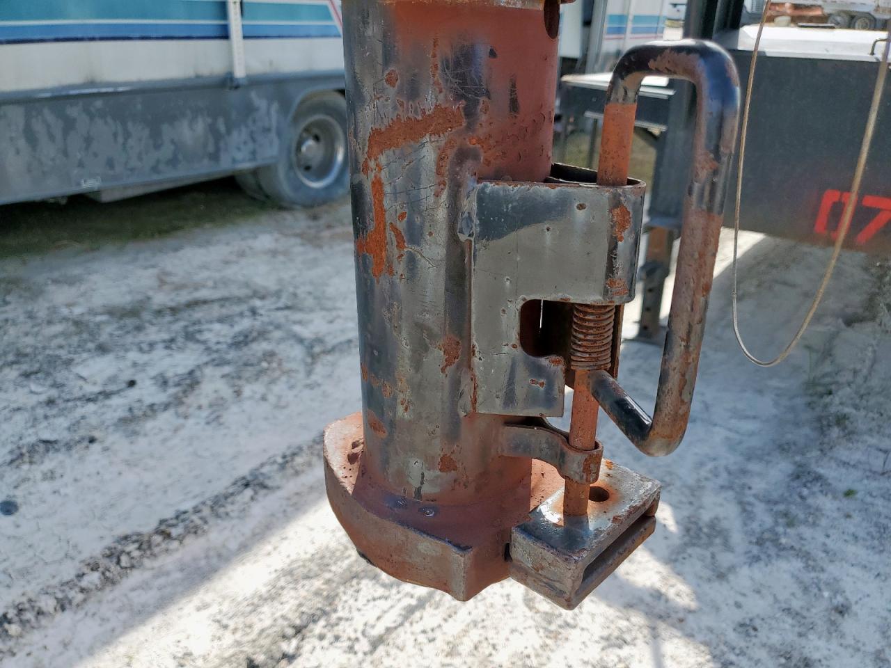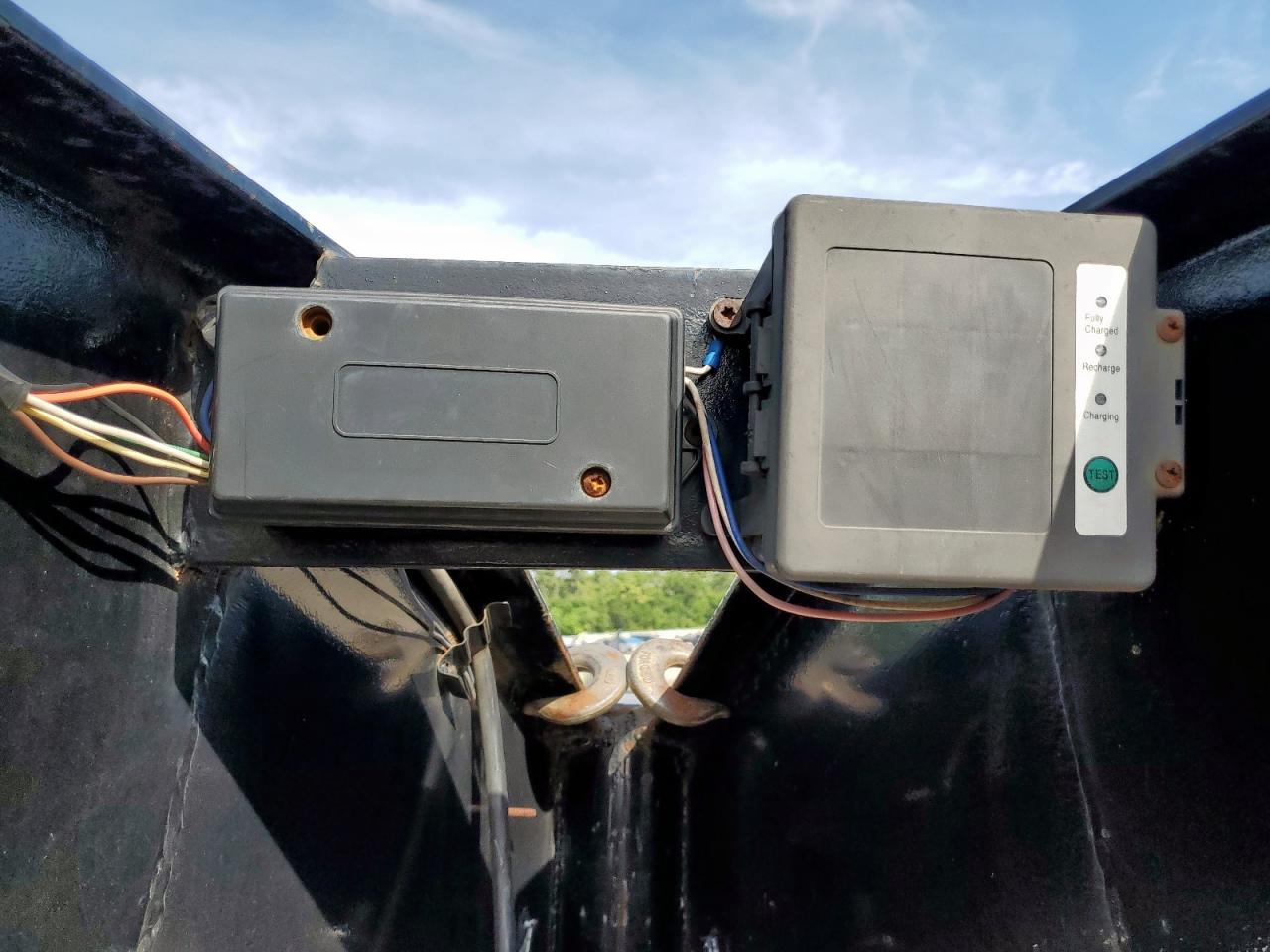 The trailer shows body damage, with wear and tear consistent with its age and use.