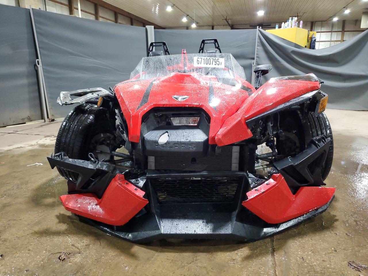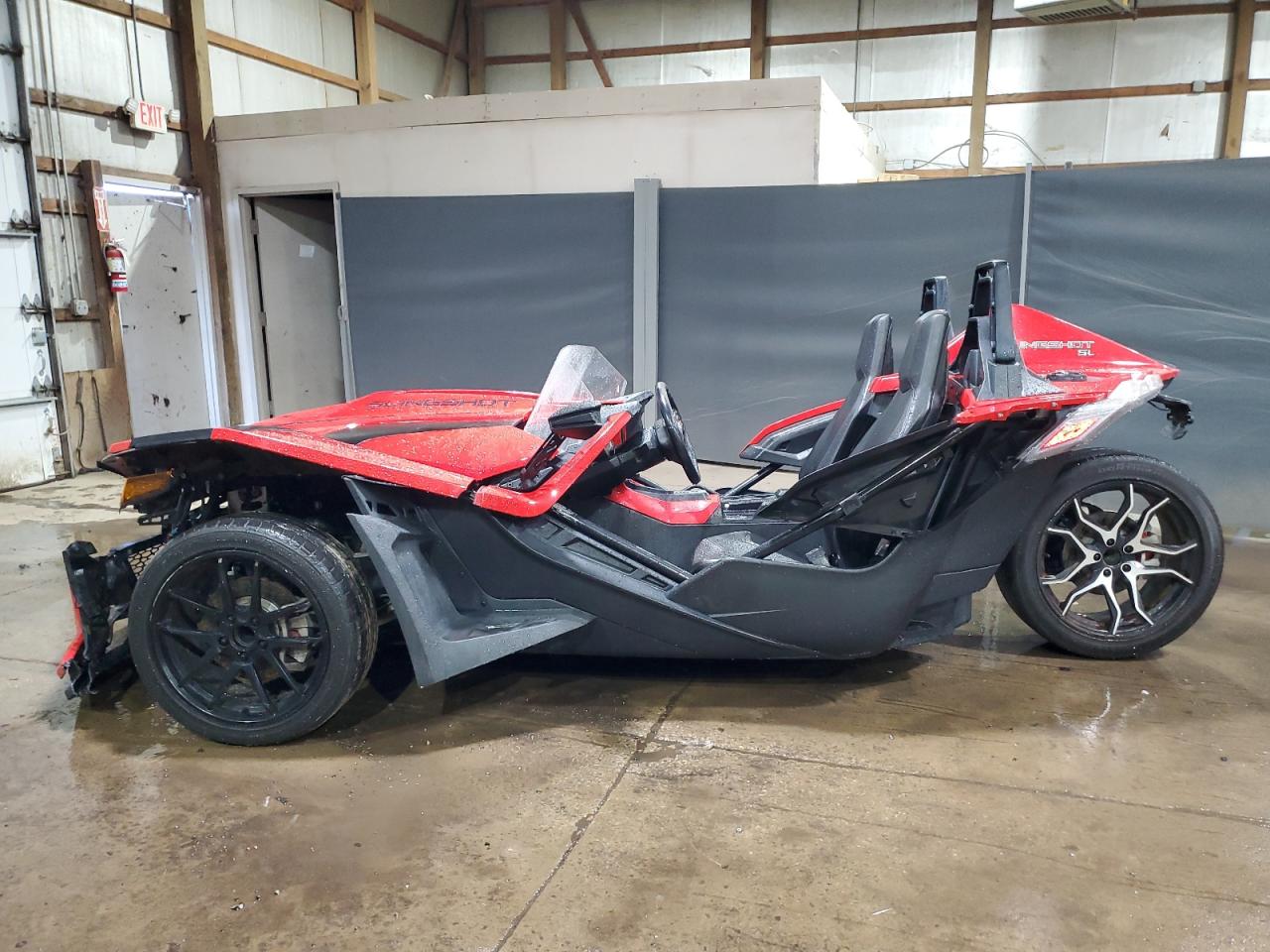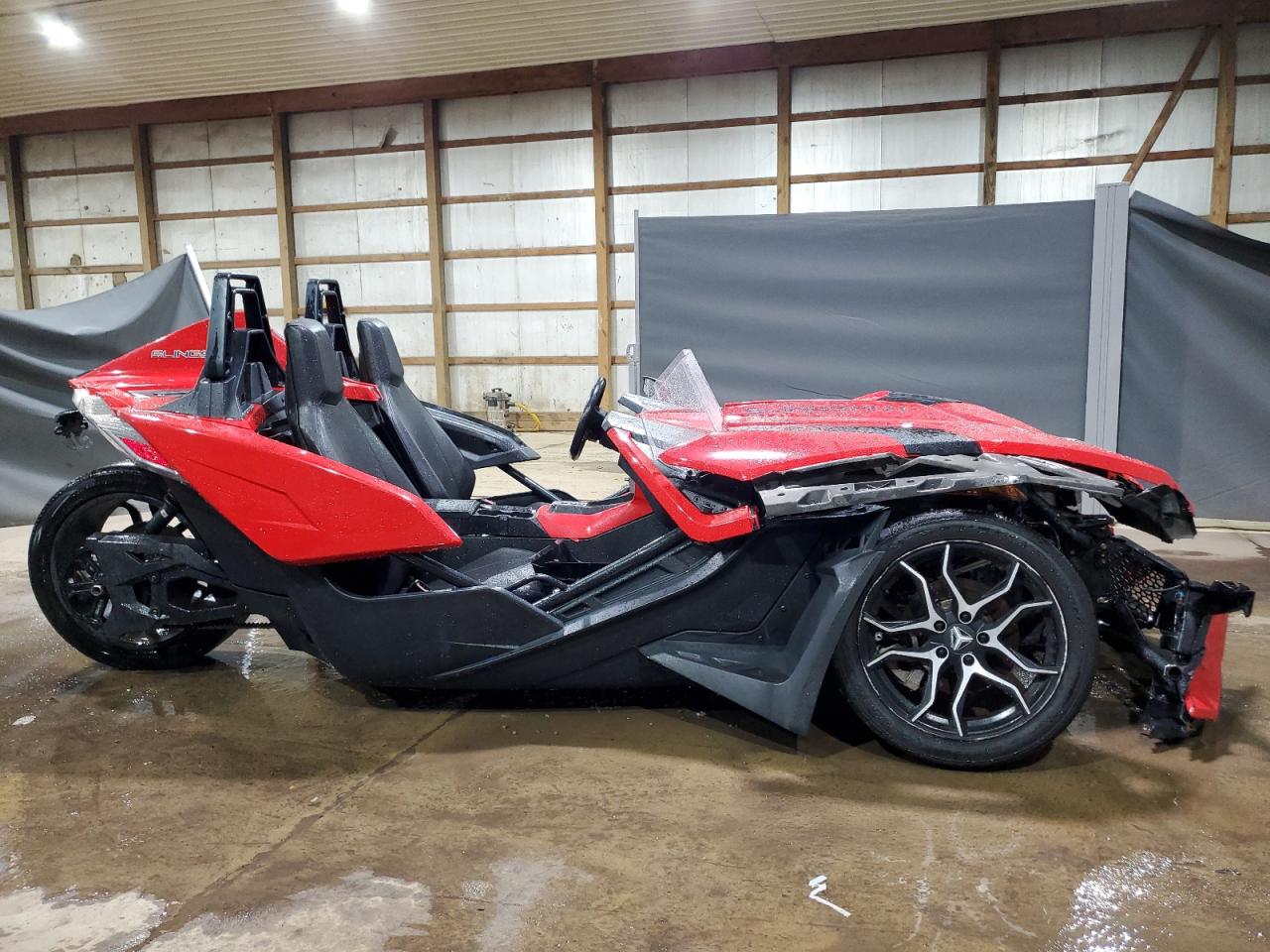 FairThis is a red 2020 POLARIS SLINGSHOT SL. The vehicle has sustained significant front-end damage and undercarriage damage. The vehicle's color is red. The vehicle's front end is severely damaged, including the bumper, body panels, and possibly the frame. The wheels appear to be intact, but the lights and windshield are damaged. The interior shows signs of wear and tear, but the extent of the damage is not clear. The airbags status is unknown. The vehicle is likely not drivable due to the extent of the front-end damage.
