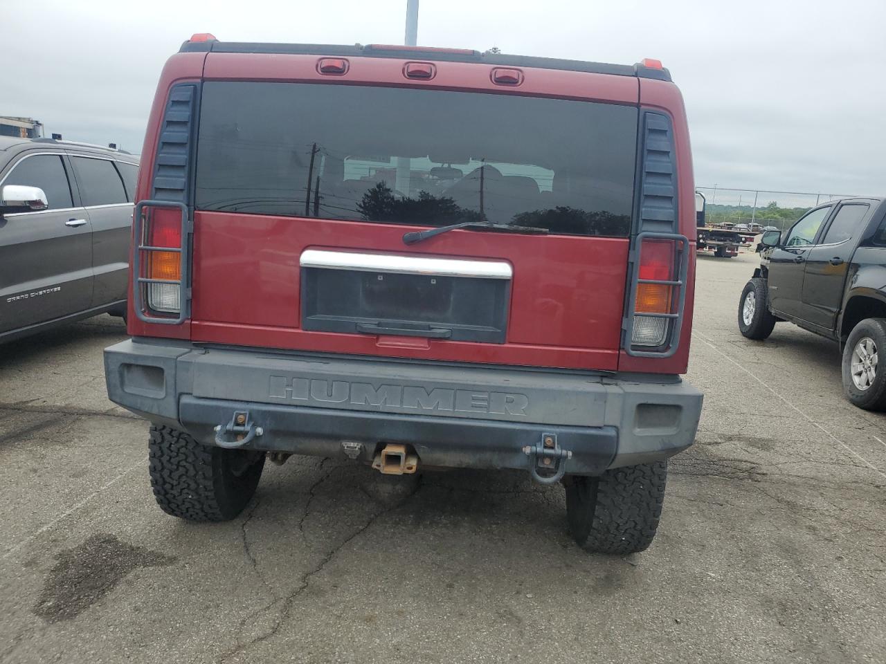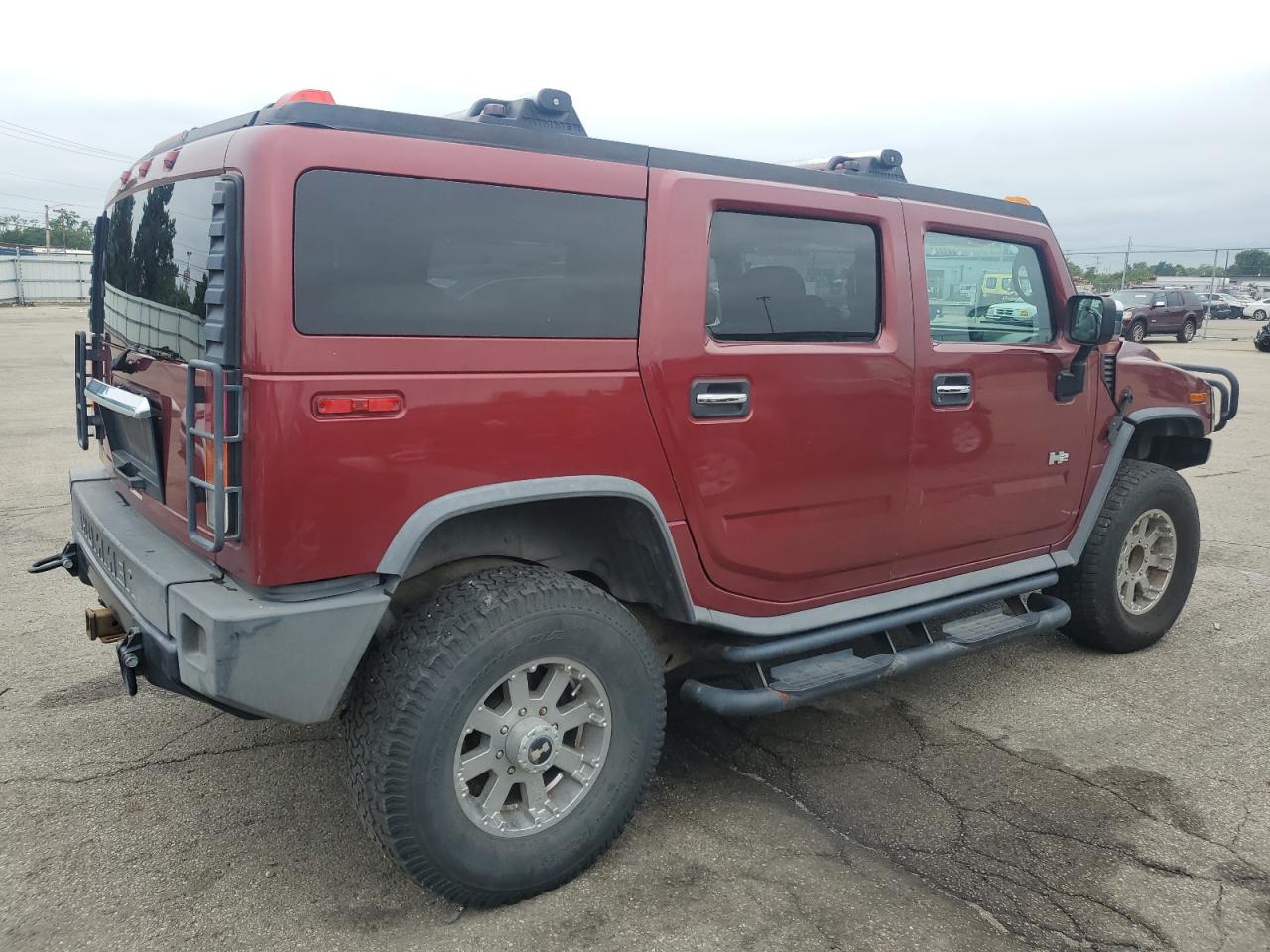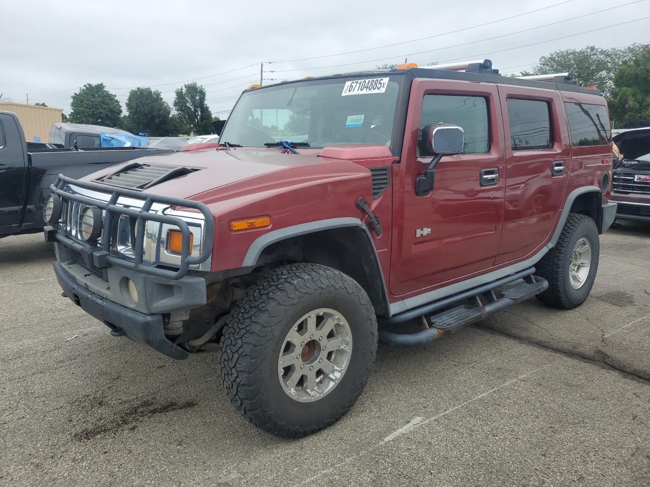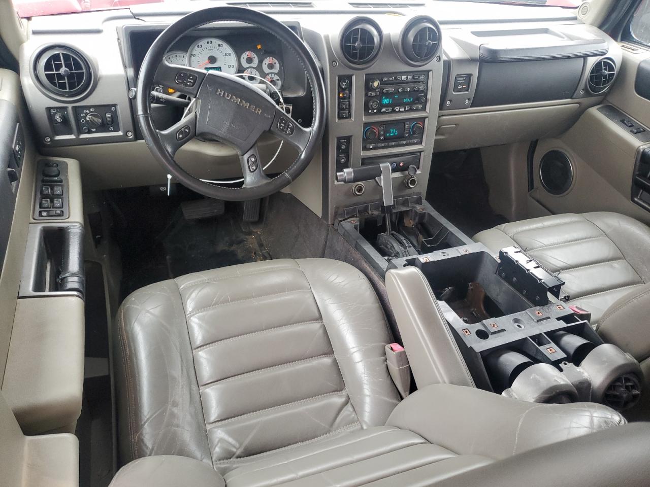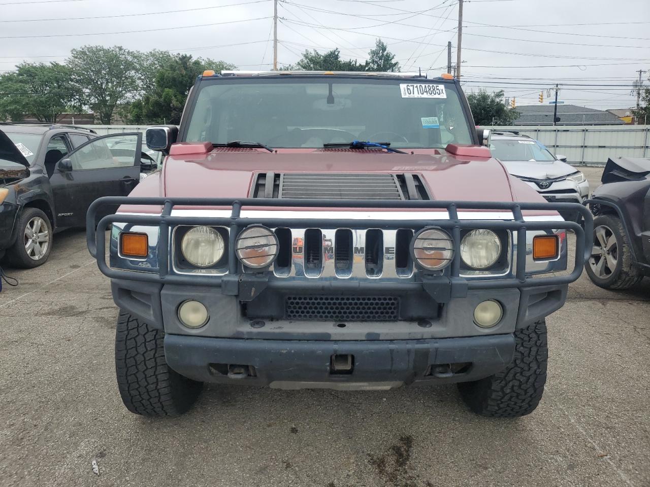 FairThis is a maroon 2003 HUMMER H2. The vehicle has cosmetic and body damages. The car is a 'Run & Drive Verified' vehicle. The exterior shows minor dents and scratches. The interior shows signs of wear, with visible damage to the seats and dashboard. There are no visible damage to the wheels, lights, or glasses. There are no airbag related damages.