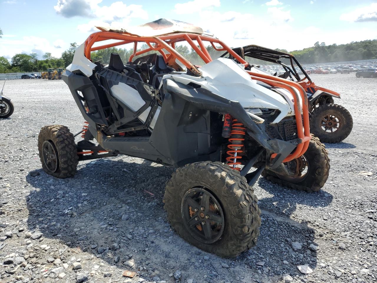 The POLARIS RZR TURBO 2024 shows extensive damage to the side and front end. The body panels are heavily damaged, and the front end has significant impact damage. Wheels are damaged and deflated. The interior also exhibits visible damage. Airbags were not observed in these pictures.