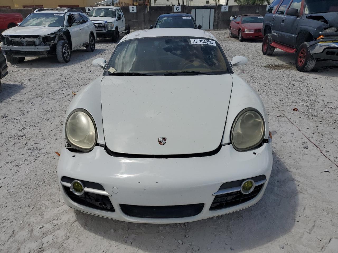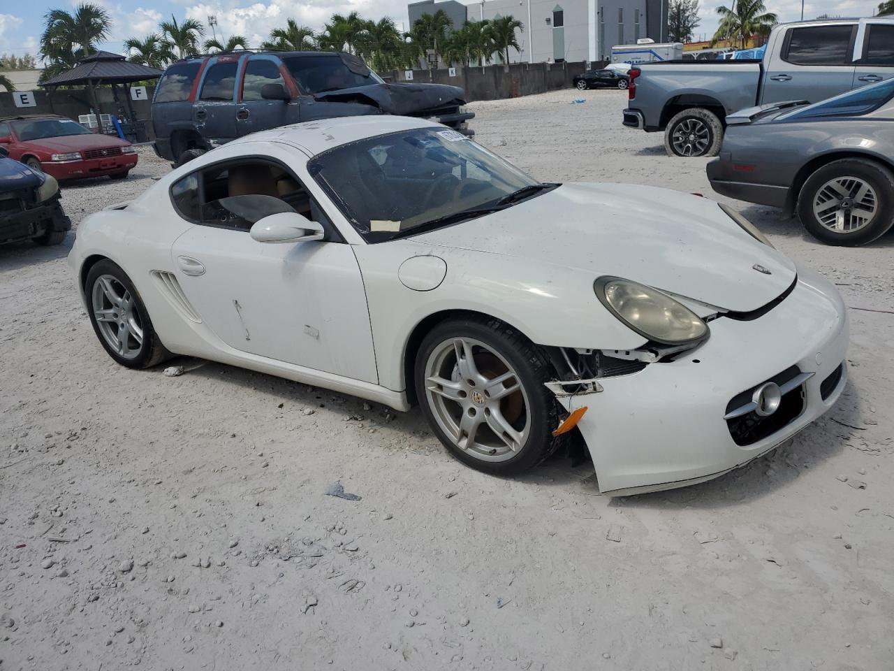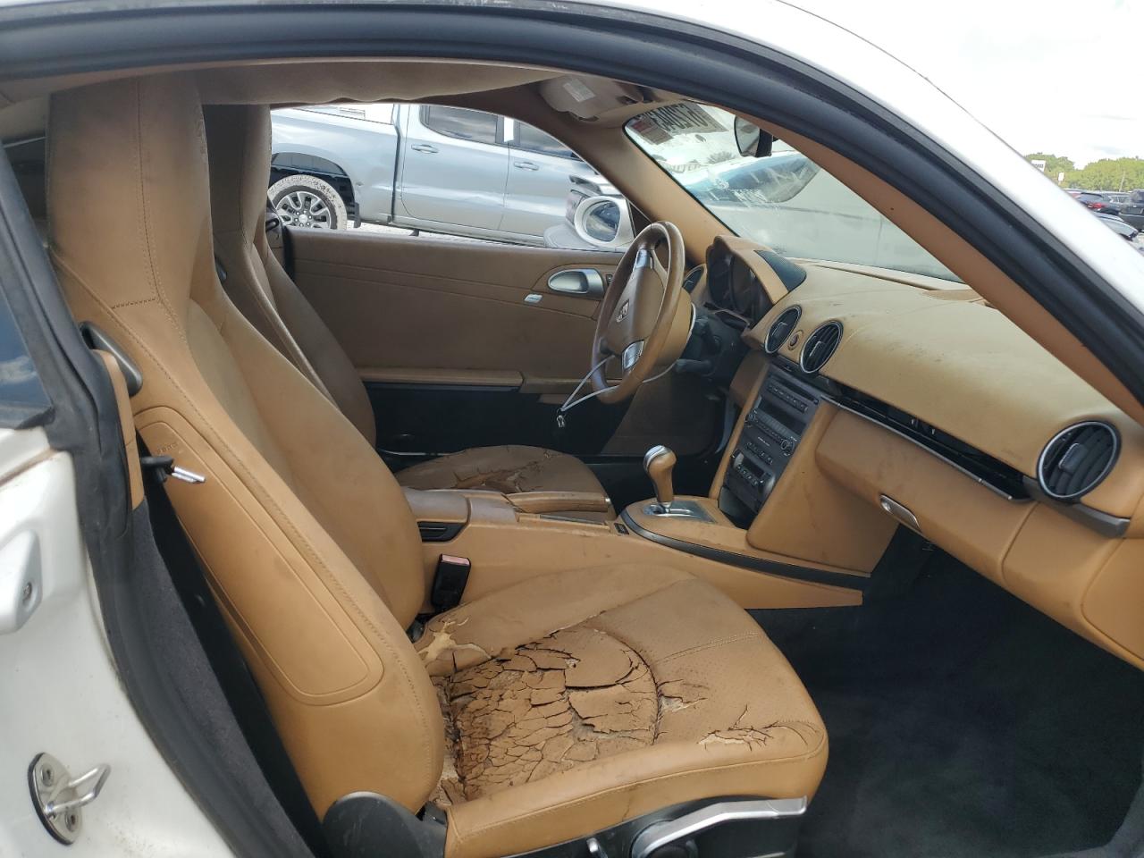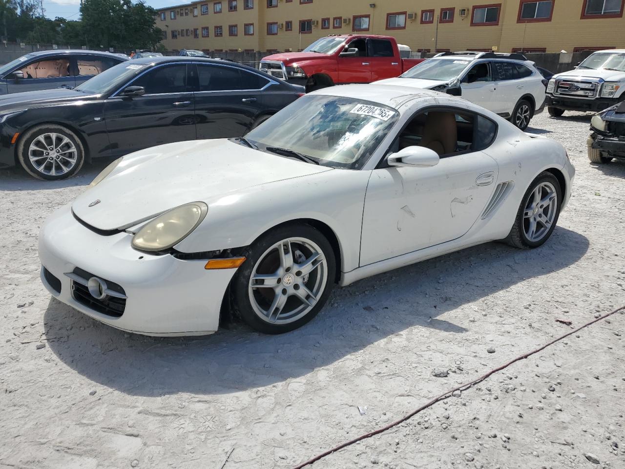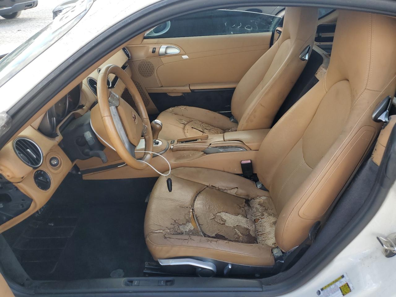 FairThe 2008 Porsche Cayman in white exhibits significant damage. The front end has major damage. The vehicle's interior shows significant wear and tear with extensive damage to the seats and other components, The dashboard indicates an odometer reading of 43,956, but the overall state of the car suggests the need for considerable repair and is likely not drivable.