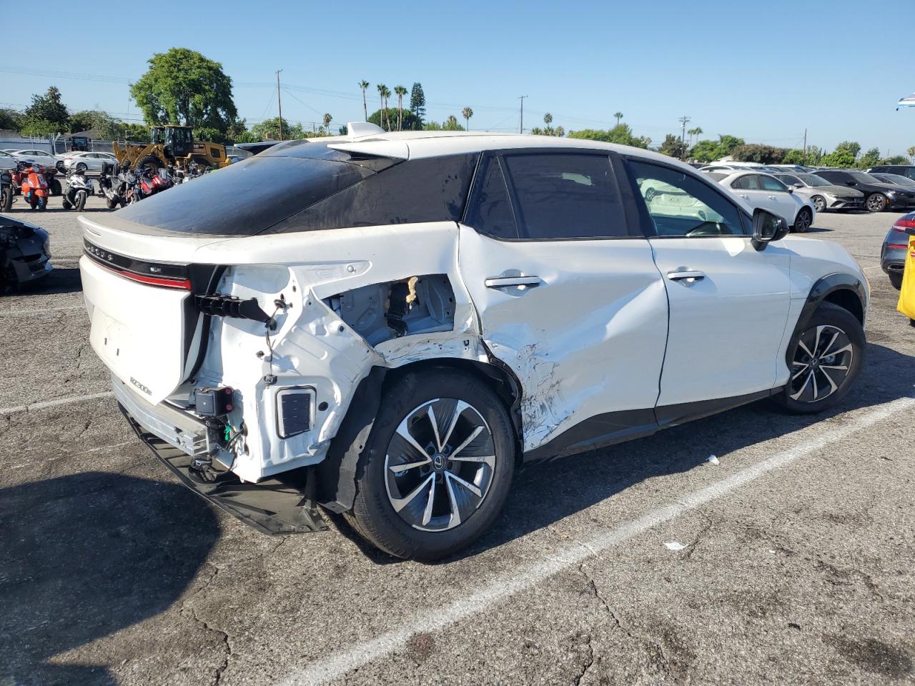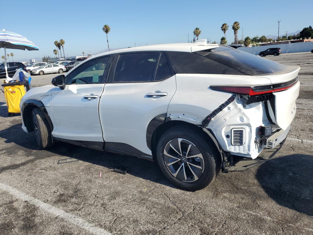 FairThe white LEXUS RZ 300E 2025 exhibits significant damage. The primary damage is to the rear end, and the secondary damage is to the side. The vehicle's exterior condition is fair. The interior shows minor wear and tear, placing it in good condition. The vehicle starts. The car itself is a luxury electric SUV, designed for comfort and modern technology.