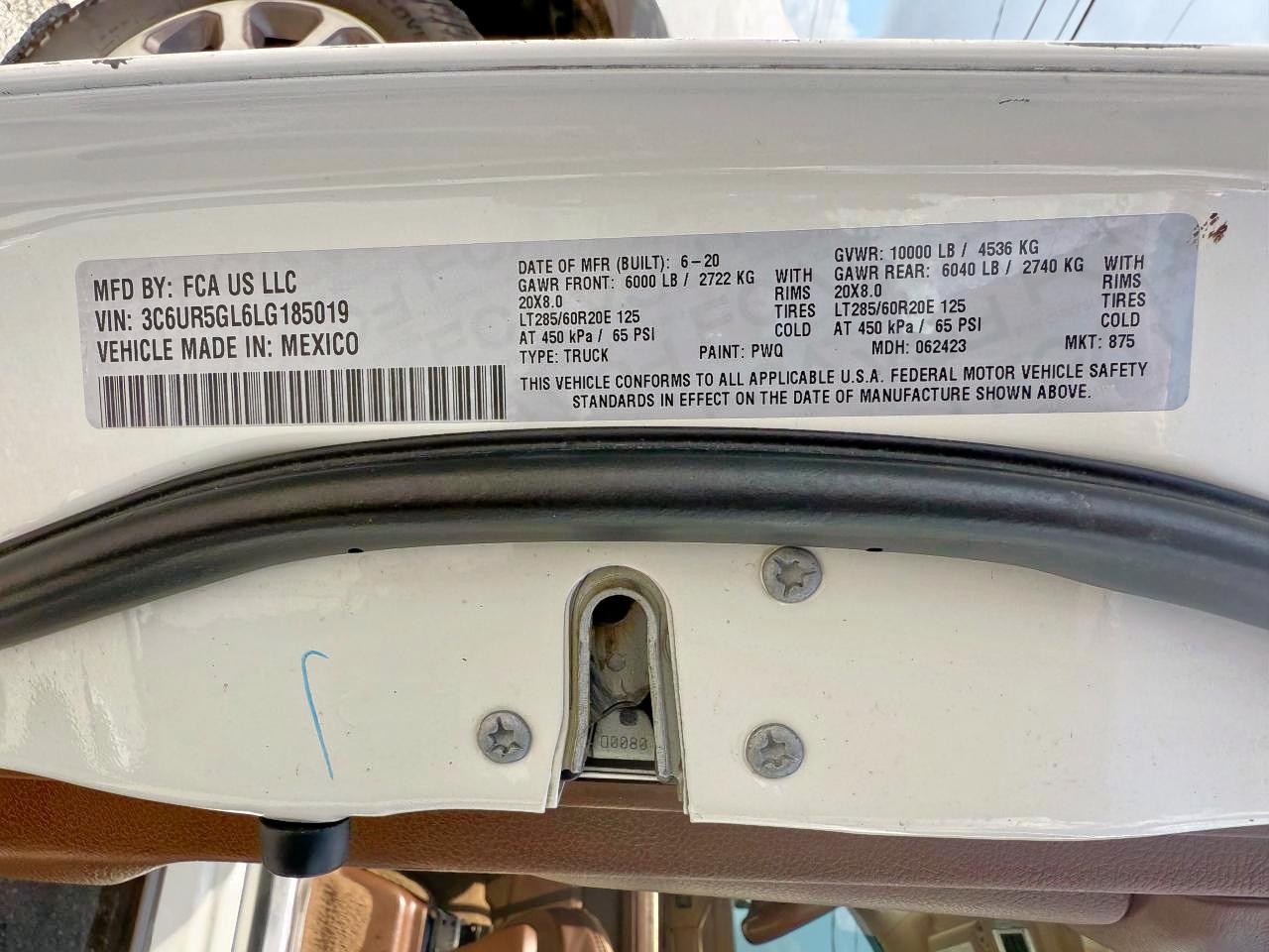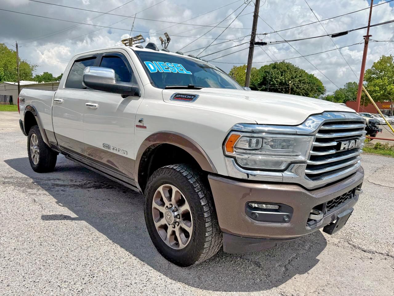 GoodThis is a 2020 RAM 2500 Longhorn, white in color, with a Run & Drive Verified status. The vehicle has sustained hail damage, and minor dents/scratches are present. The wheels, lights, and glasses appear to be in good condition. The interior shows minimal wear and tear. Overall, the truck is in good condition, suitable for repair and ready for action!