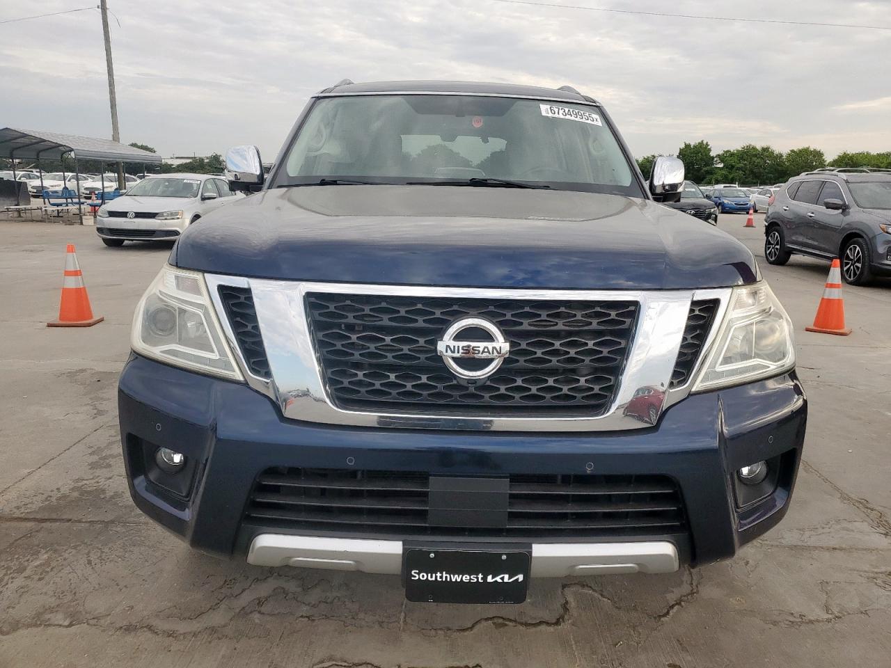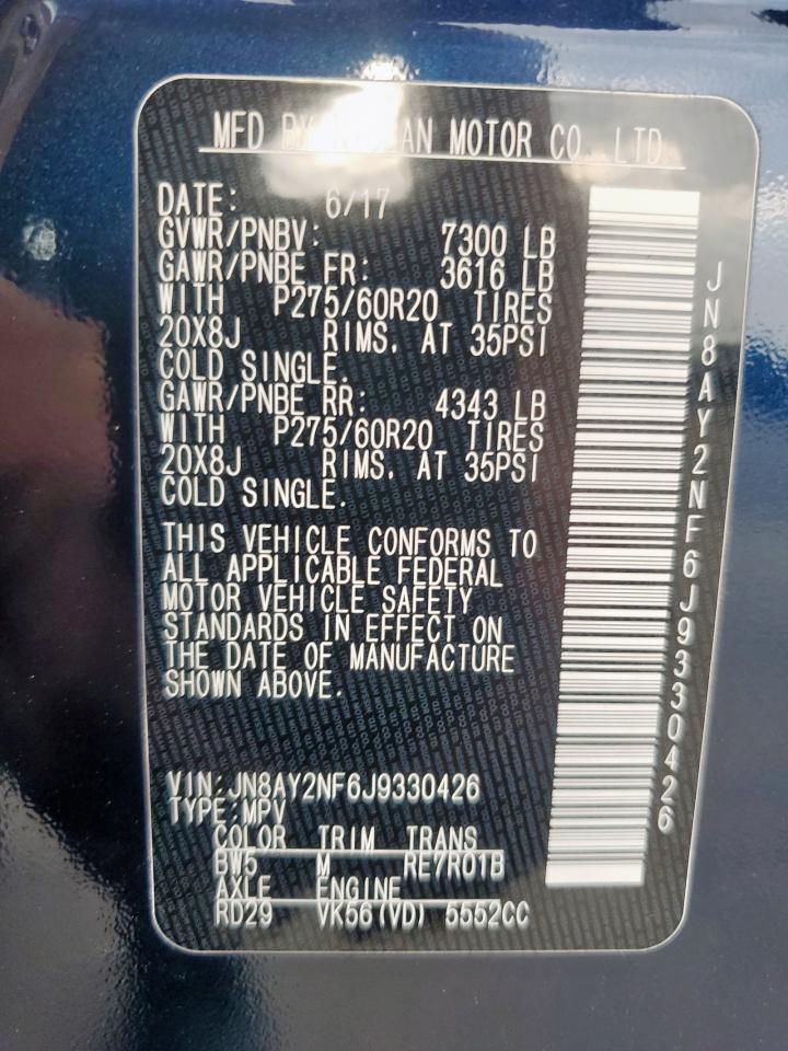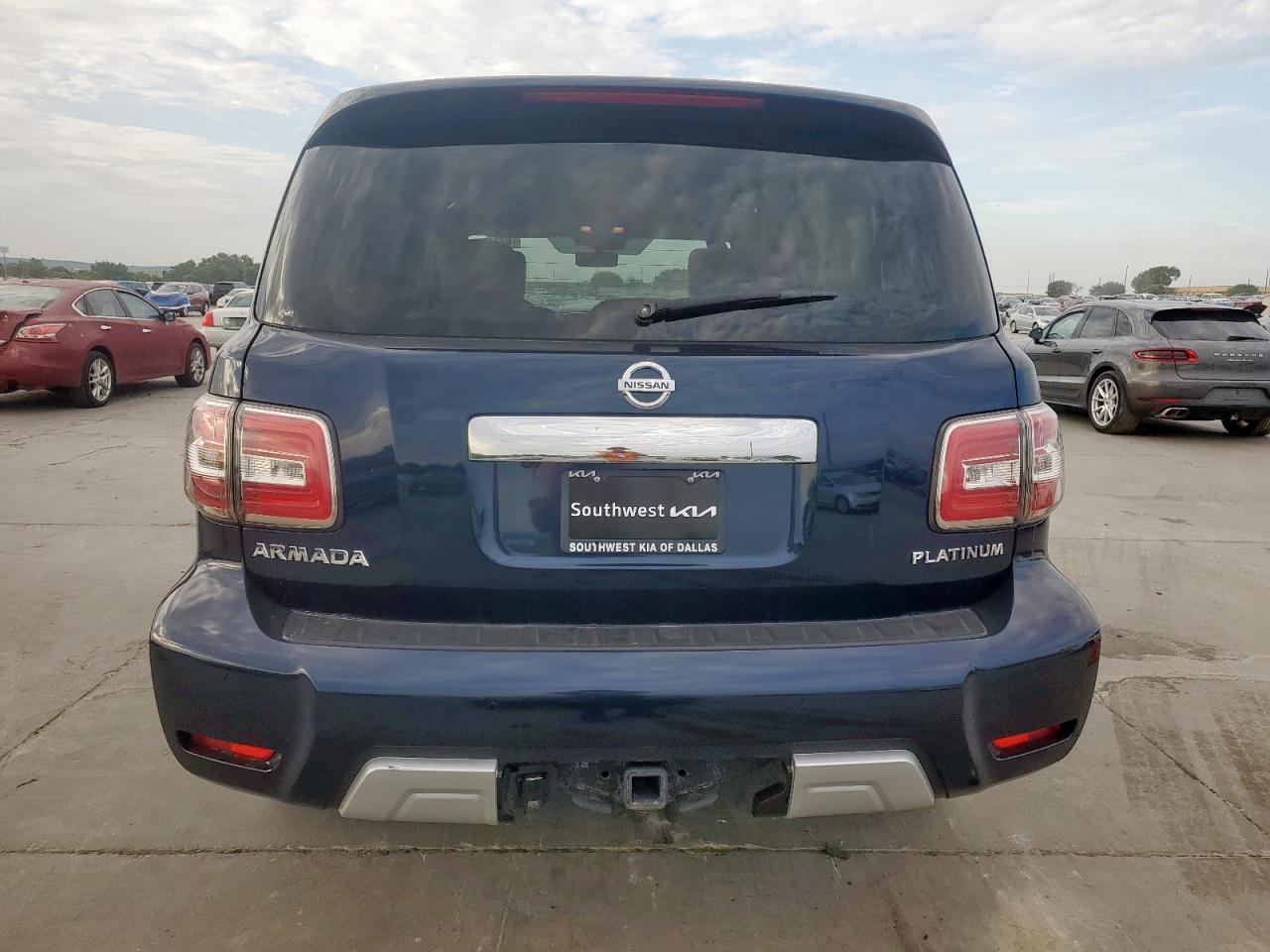 FairThis is a 2018 Nissan Armada Platinum with significant side body damage. The primary damage is on the side, with no secondary damage. The car is blue, and the starting code is DEFAULT. The wheels, lights, and glasses appear to be intact. The vehicle shows signs of moderate damage and may be drivable after repairs. Interior appears to be in good shape. Airbags status is unknown.