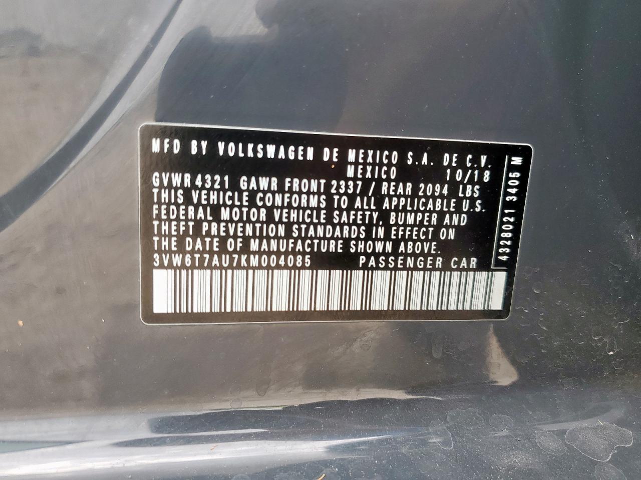 3VW6T7AU7KM004085Final Bid