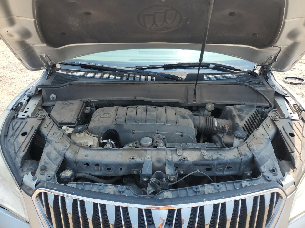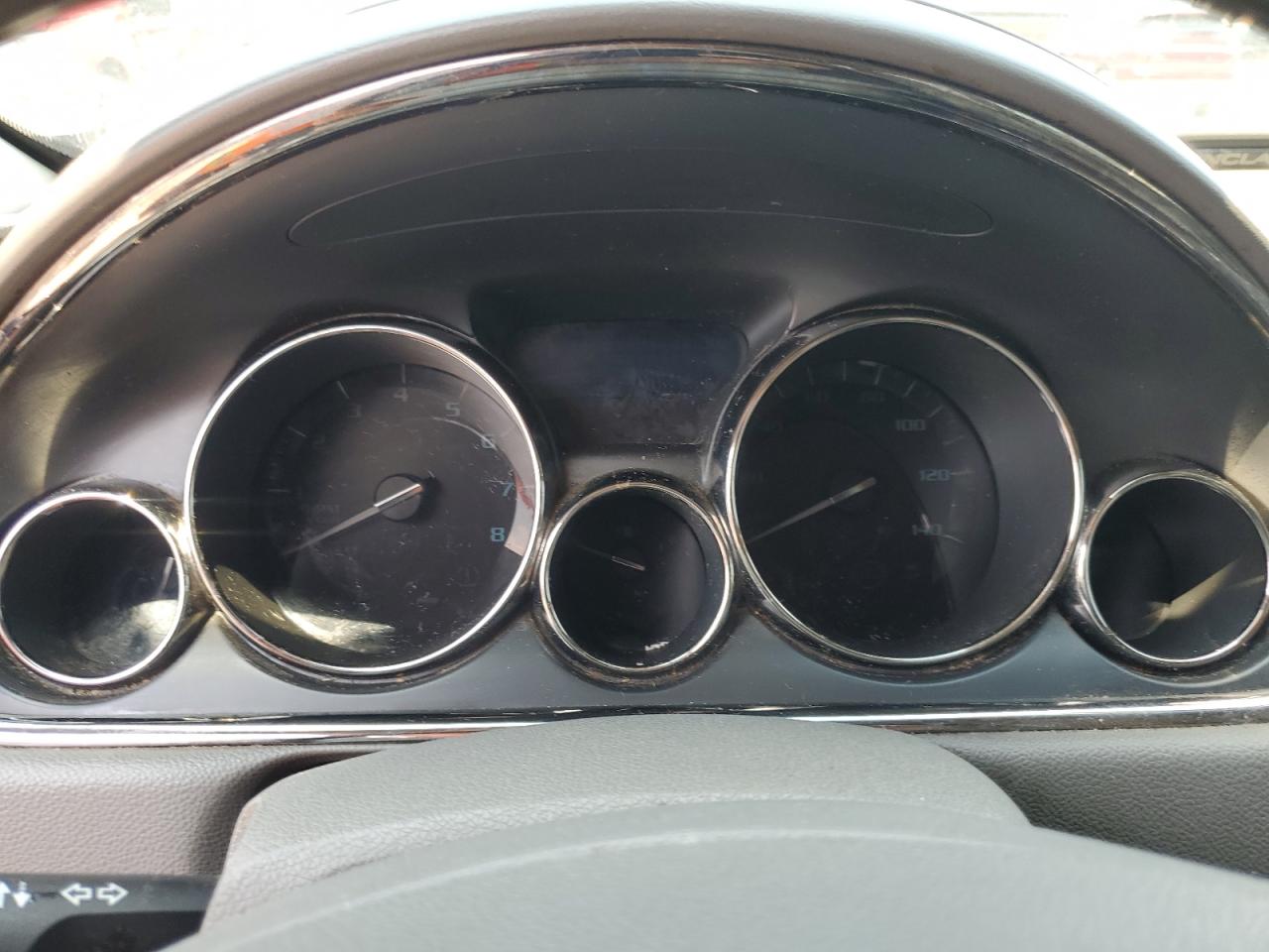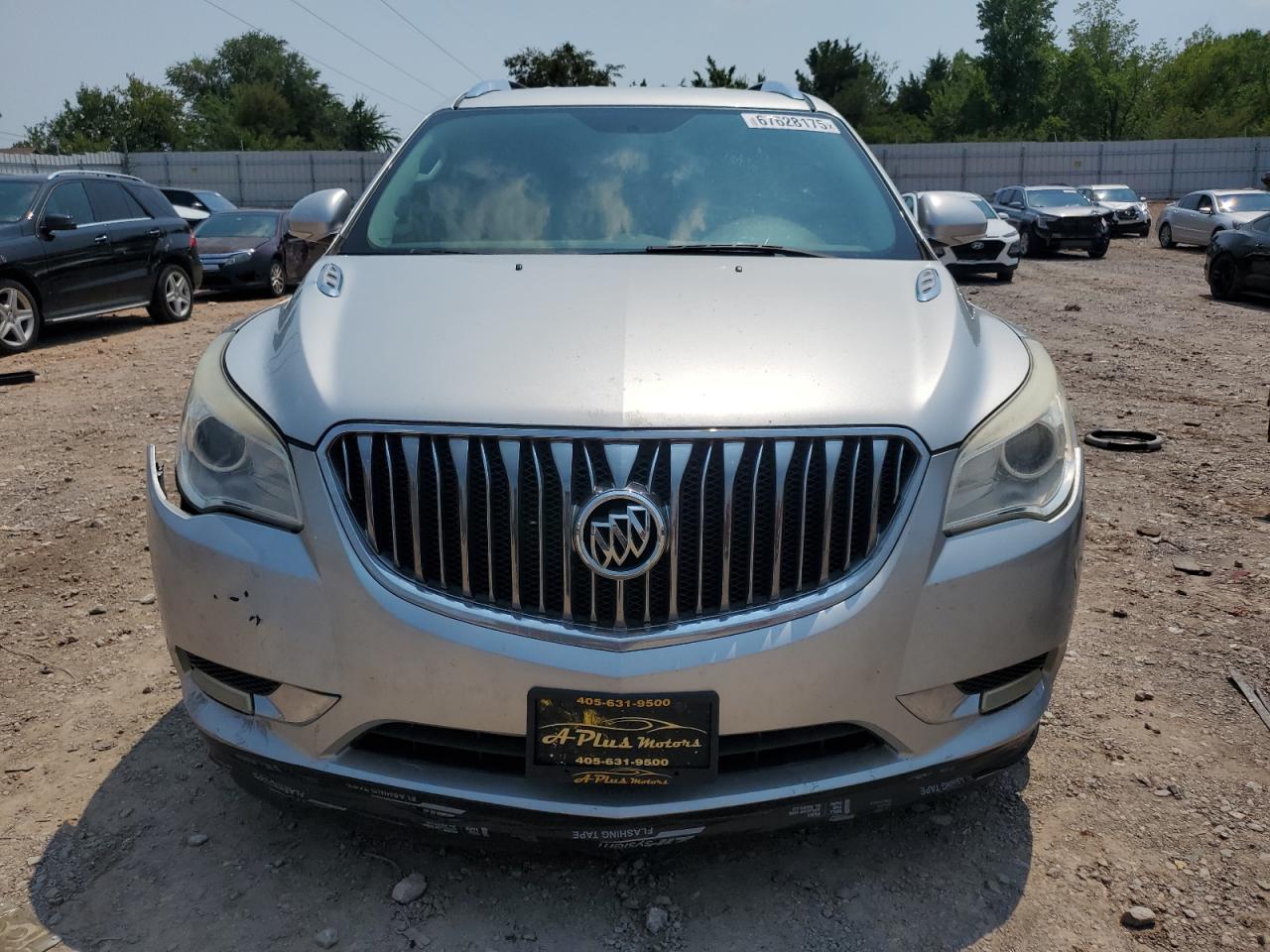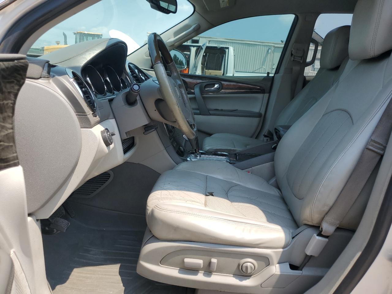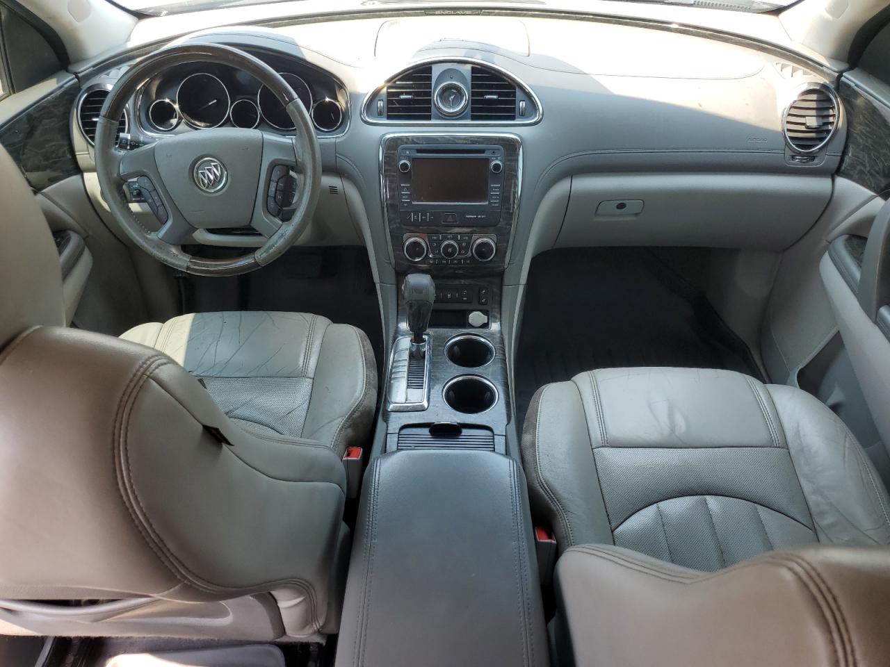 FairThe 2014 BUICK ENCLAVE is silver. The primary damage is to the front end, with secondary damage including minor dents and scratches. The lights and glasses appear to be intact. The interior shows signs of wear consistent with age and mileage.