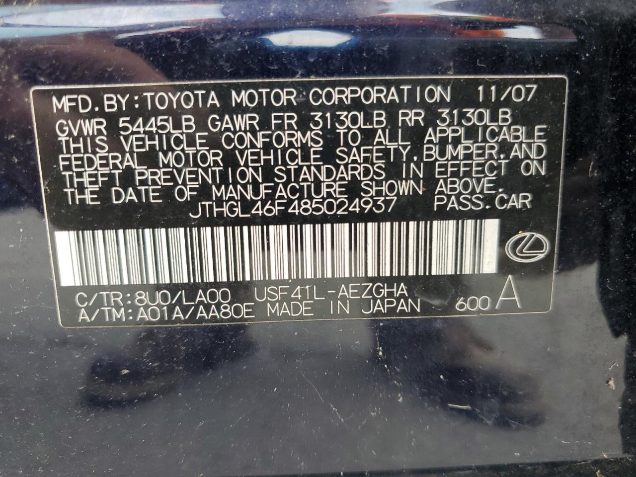 JTHGL46F485024937Date