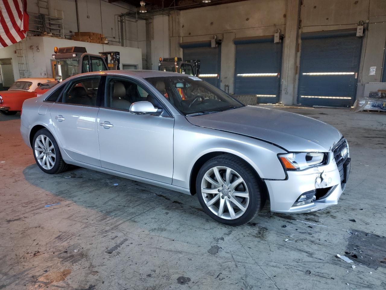 GoodThis is a silver 2013 Audi A4 Premium with front-end damage, classified as Run & Drive Verified. The primary damage is to the front end, with no secondary damage reported. The car's color is silver. The vehicle's condition is impacted by the front-end damage, affecting its overall state. Despite the damage, the interior appears to be in very good condition. The car is drivable. The damages are primarily visible in the front. The wheels, lights and glasses seems to be fine. The car itself is a premium model, indicating a focus on features and quality. The airbags status is unknown. The interior damage is minimal. Summary: Audi A4 2013, silver, front-end damage, drivable, body damage, overall exterior good, interior very good, Fair overall state. Keywords: Audi A4 damage, front end collision, repairable Audi, used car for sale.