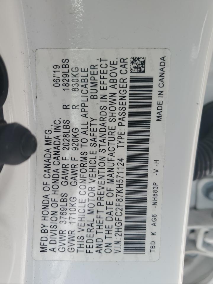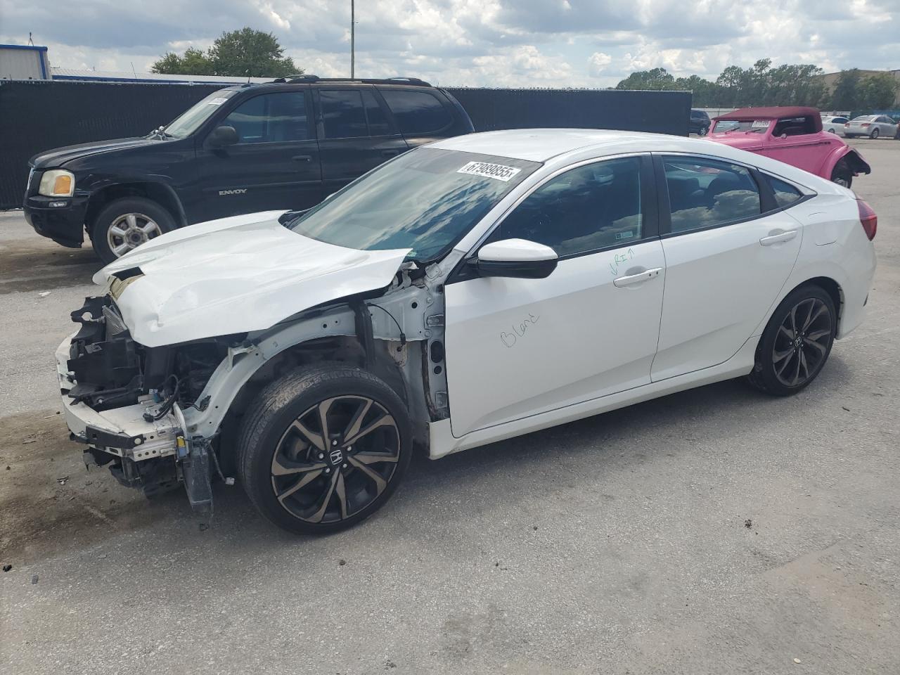 FairThe 2019 Honda Civic Sport has sustained significant front-end and side damage. The white exterior exhibits moderate damage, impacting its overall condition. The interior shows minor wear, maintaining a good condition. The car is drivable but requires considerable repair.