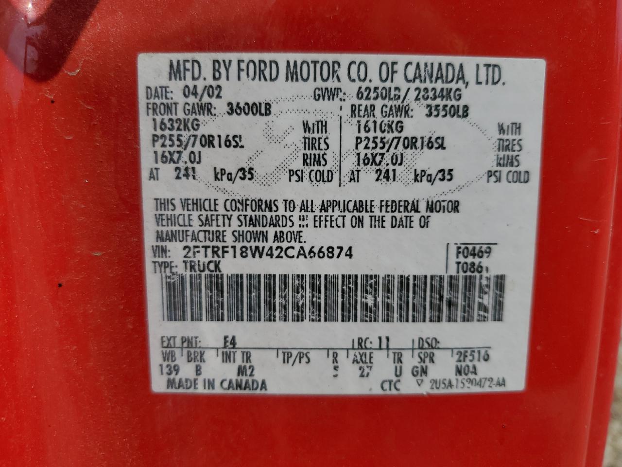 2FTRF18W42CA66874Final Bid