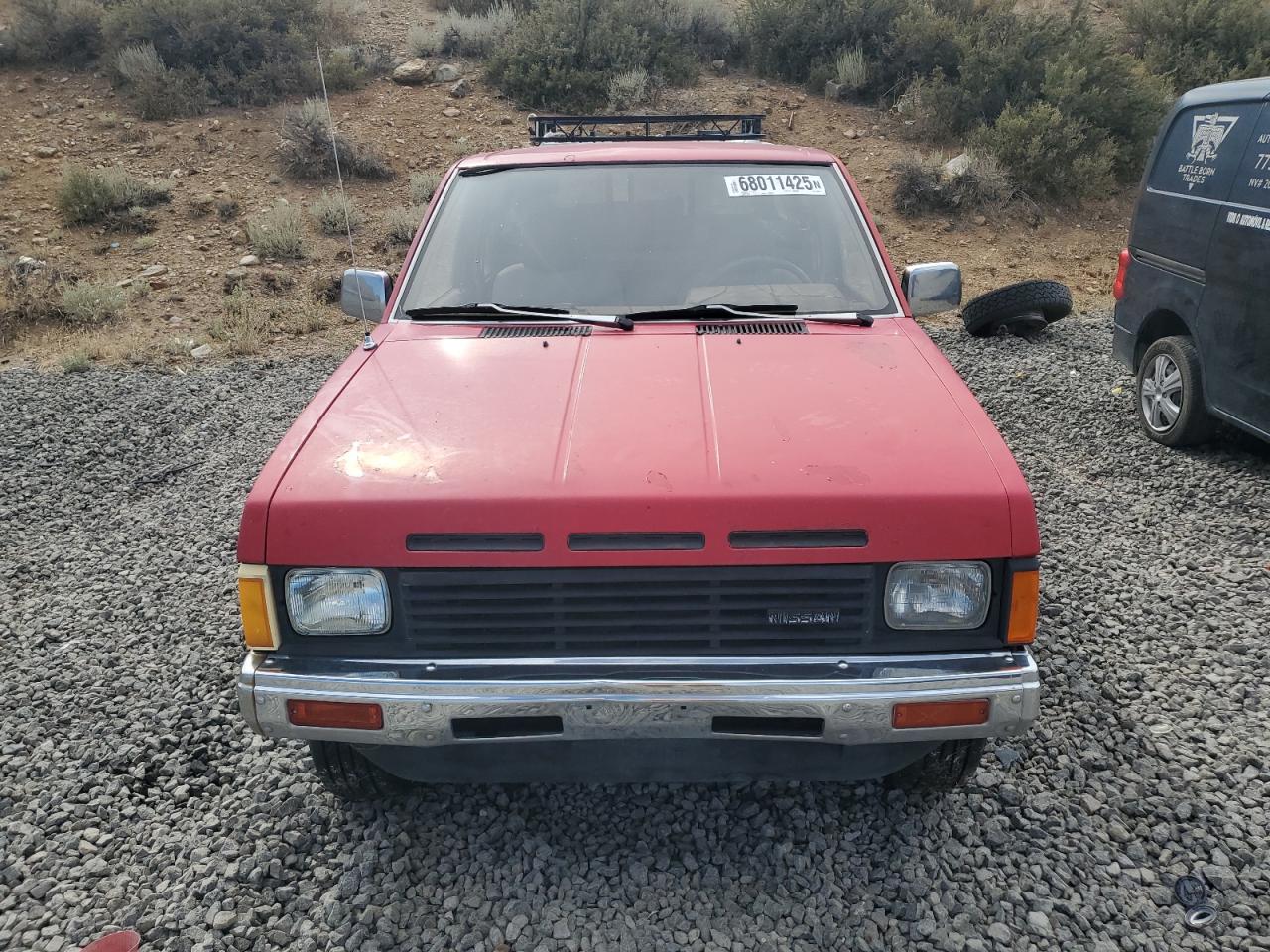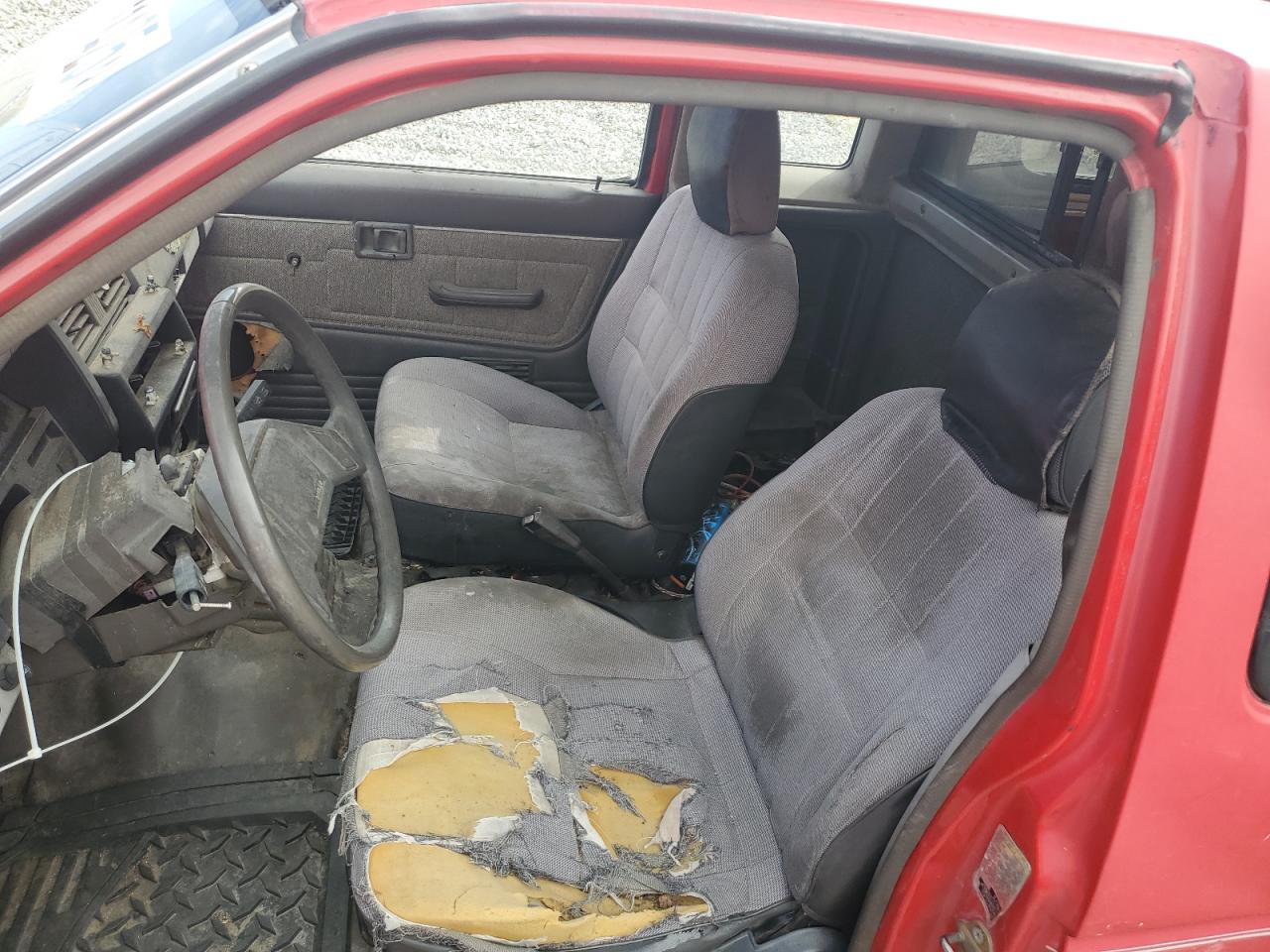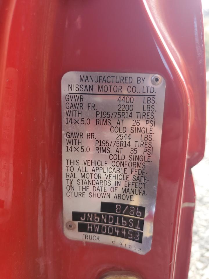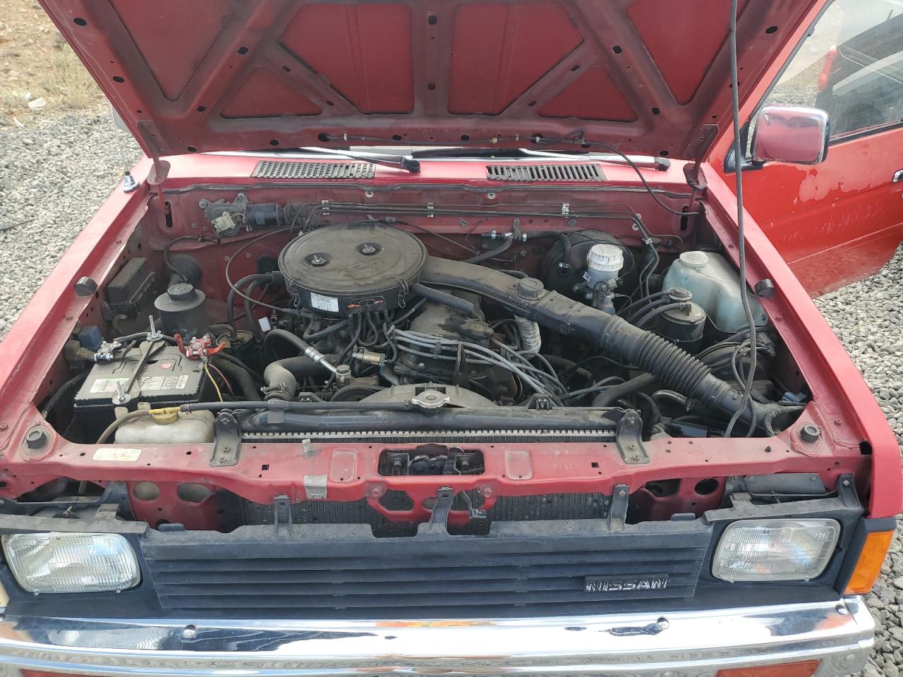 FairThe 1987 NISSAN D21 KING C, red in color, exhibits minor dents and scratches, classified as cosmetic damage. The vehicle is 'Run & Drive Verified'. The exterior shows moderate visible damage, and the interior also presents moderate wear, particularly on the seats. The car has a white cap. The wheels are fine, but the overall condition indicates a need for repair, though the vehicle is drivable. The overall state of the car is fair.