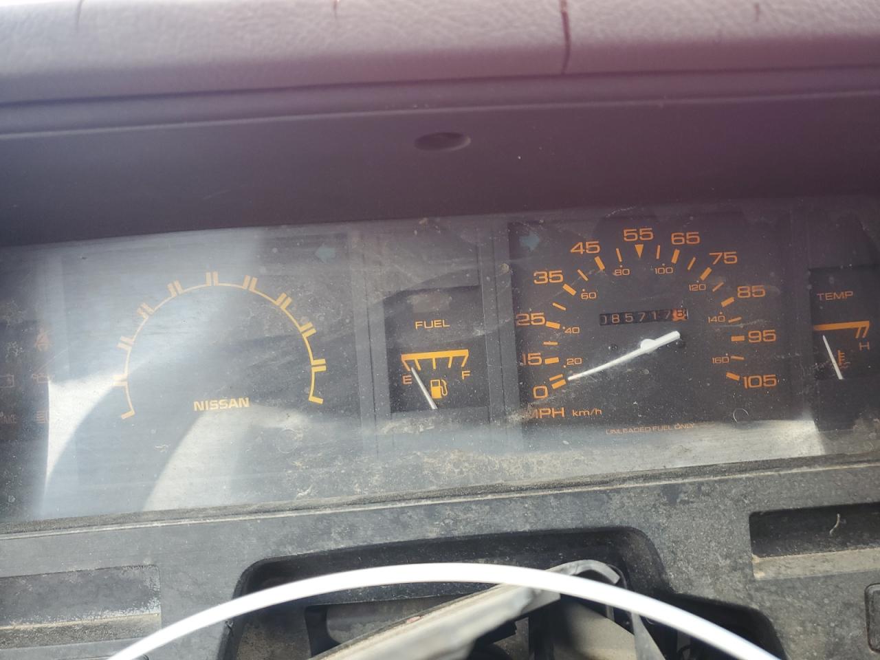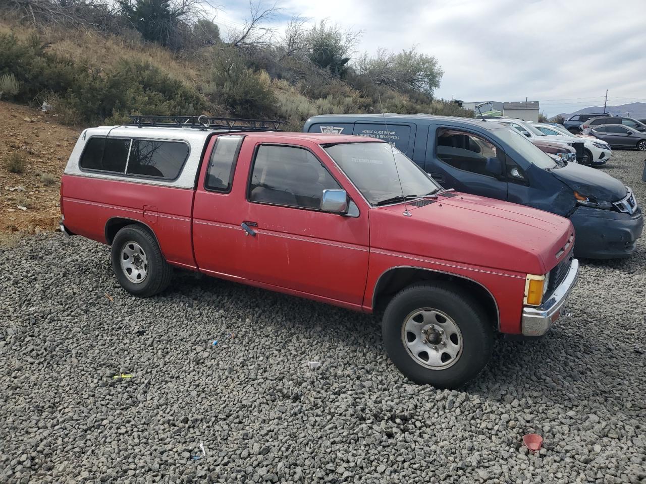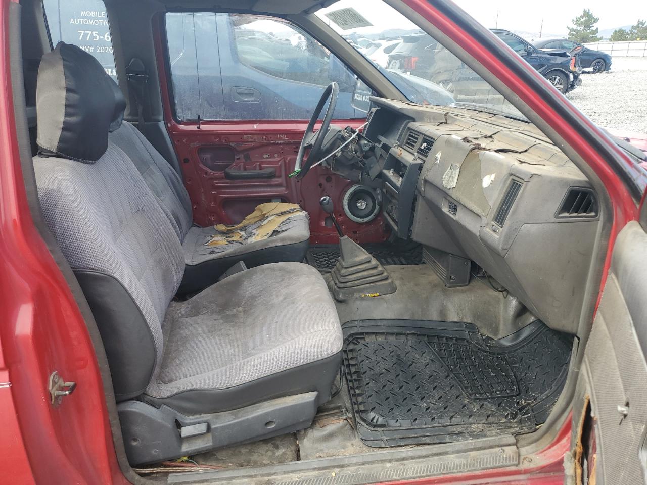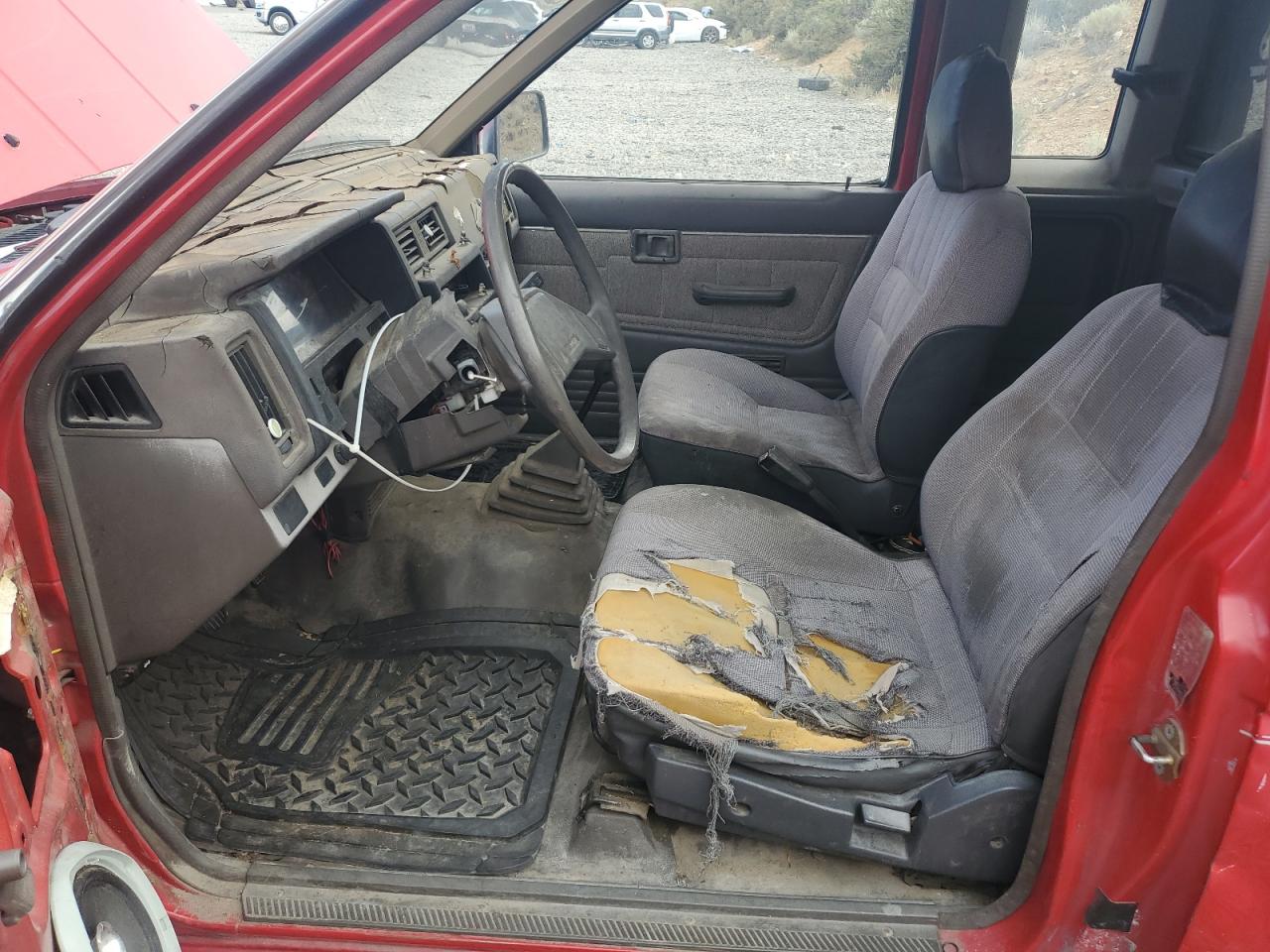 FairThe 1987 NISSAN D21 KING C, red in color, exhibits minor dents and scratches, classified as cosmetic damage. The vehicle is 'Run & Drive Verified'. The exterior shows moderate visible damage, and the interior also presents moderate wear, particularly on the seats. The car has a white cap. The wheels are fine, but the overall condition indicates a need for repair, though the vehicle is drivable. The overall state of the car is fair.