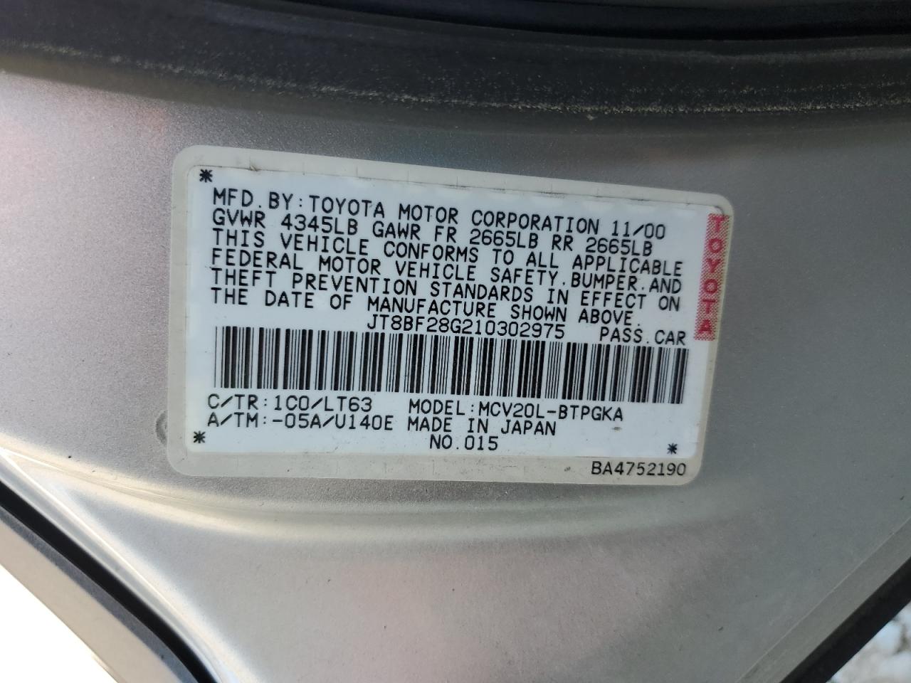 JT8BF28G210302975Final Bid