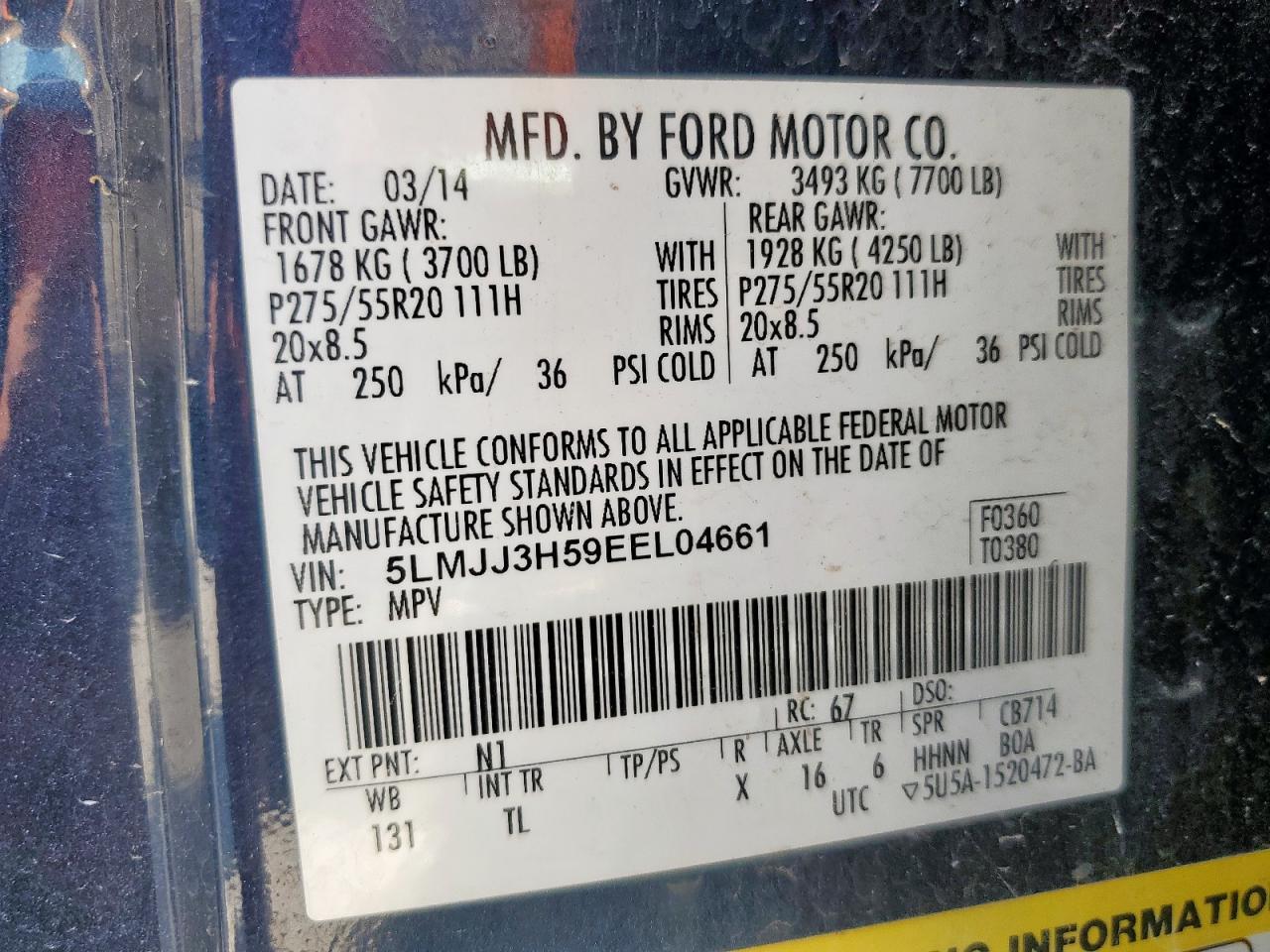 FairThis is a 2014 LINCOLN NAVIGATOR in blue. The vehicle exhibits signs of normal wear and tear with minor dents and scratches, the overall exterior condition is Fair, the interior also shows wear, with significant damage to the seats and other surfaces. The vehicle's current state suggests it may require some repair, but it appears drivable. The vehicle has cosmetic and body damages. Check for interior damage and airbag.