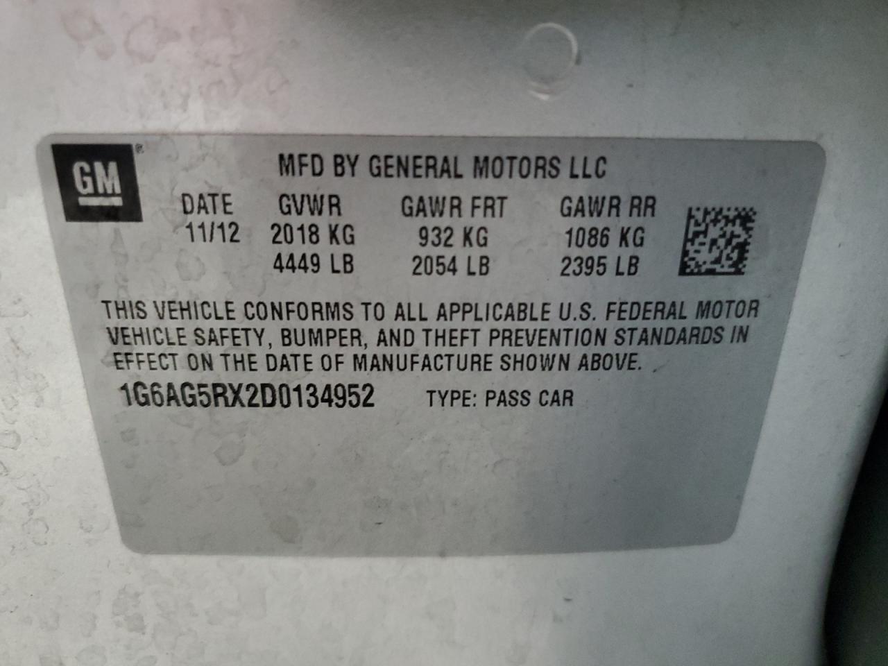 1G6AG5RX2D0134952Final Bid