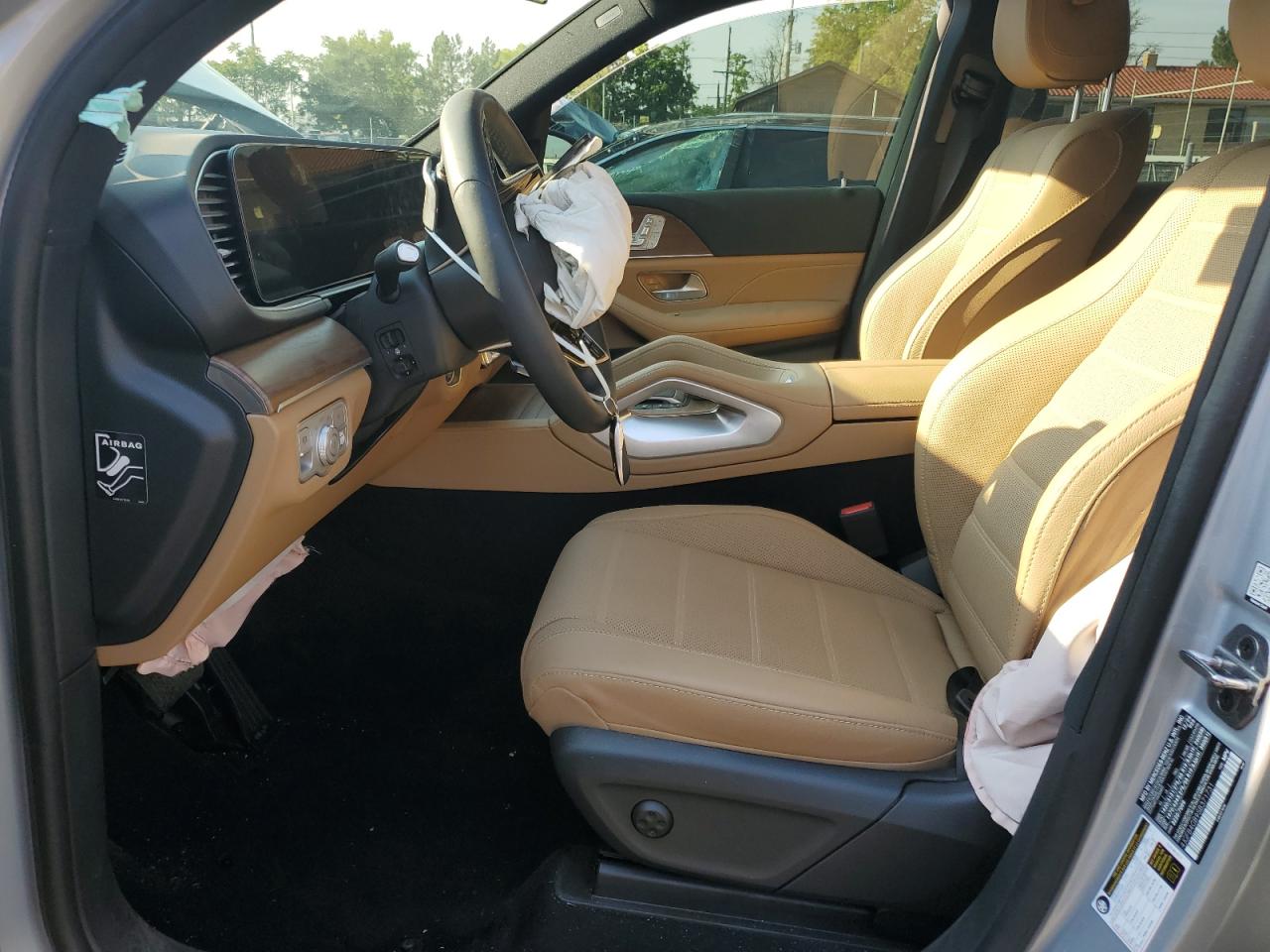 FairThis is a silver MERCEDES-BENZ GLE 450E 4MATIC 2025, a luxury SUV. The vehicle has sustained front-end damage. The airbags have been deployed. The car's body shows signs of damage, and will require significant repair. The interior has some damage, but overall appears to be in good condition. The wheels, lights and glasses have no visible damage.