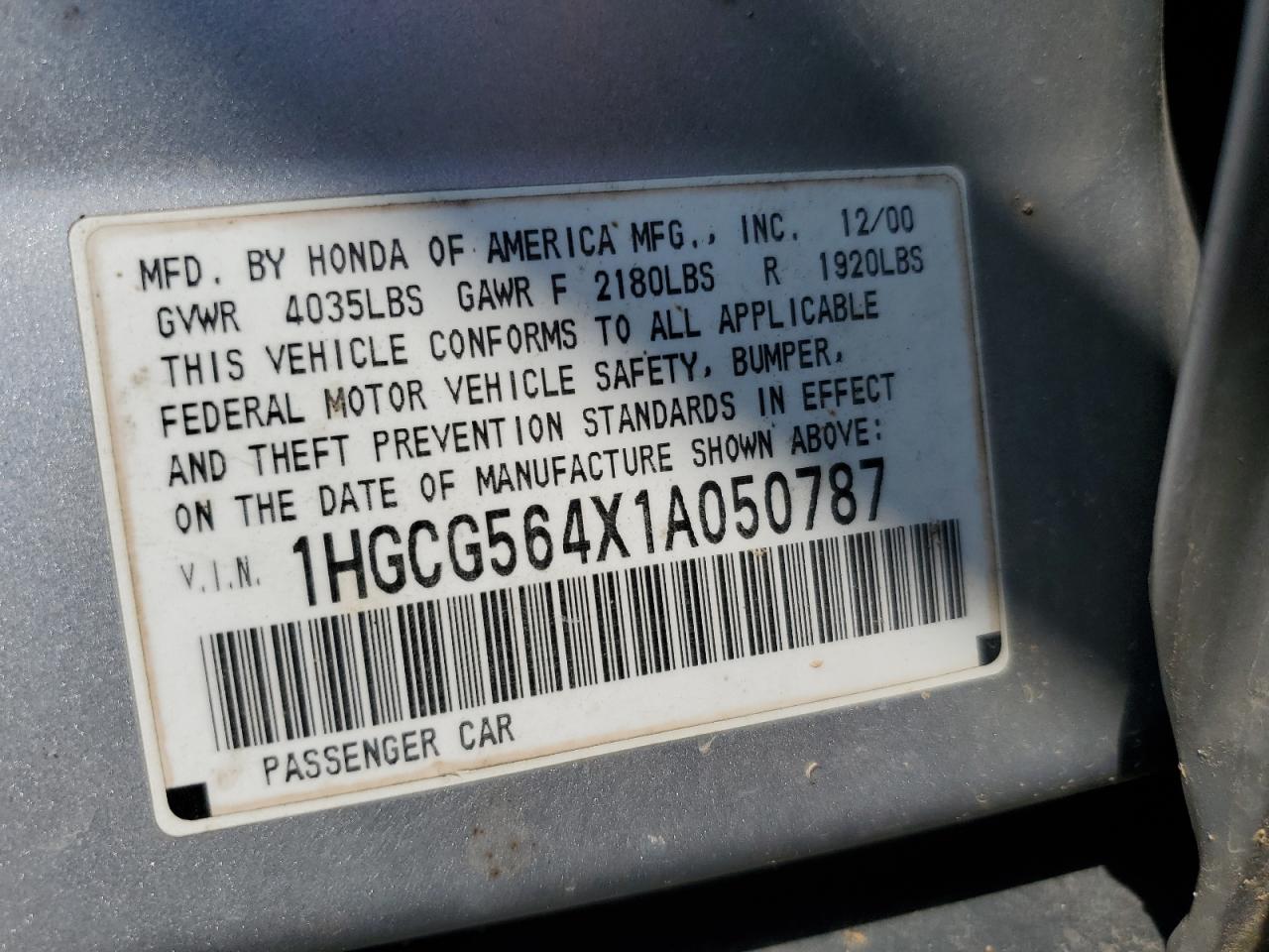 1HGCG564X1A050787Location