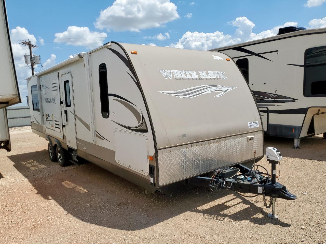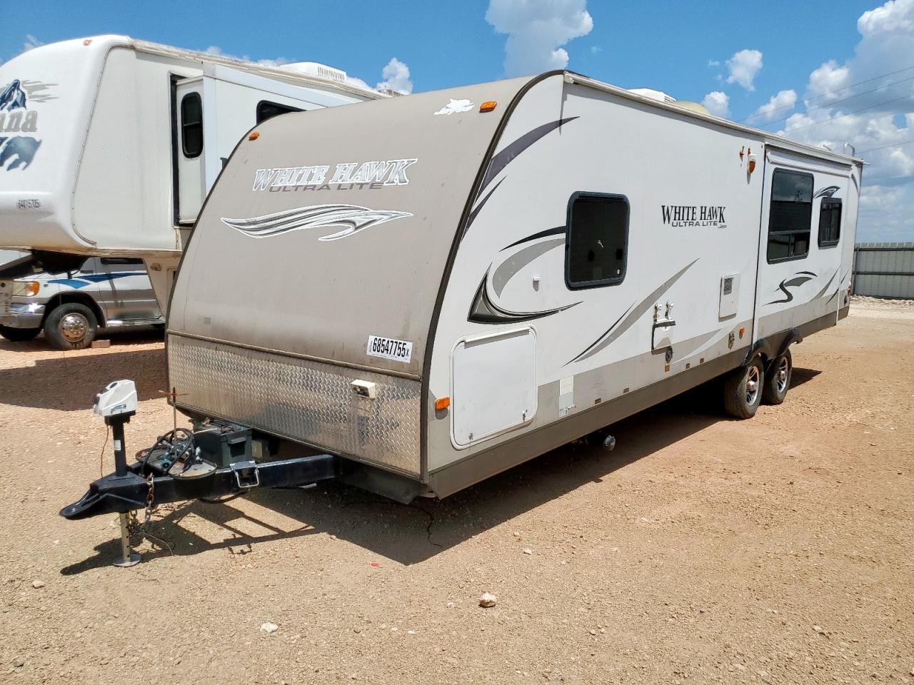 FairThe 2013 White Hawk trailer shows signs of hail damage and minor dents/scratches. The vehicle's exterior condition is rated as Fair. There is potential damage to the body panels. The interior is in good condition, with minor wear and tear. The trailer is likely still drivable, though some repairs may be needed. Keywords: Hail damage, dents, scratches, White Hawk, trailer, repairable, drivable, body damage.