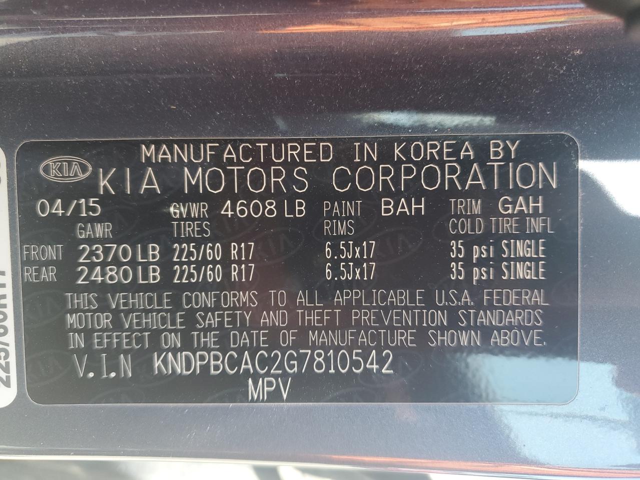 KNDPBCAC2G7810542Final Bid