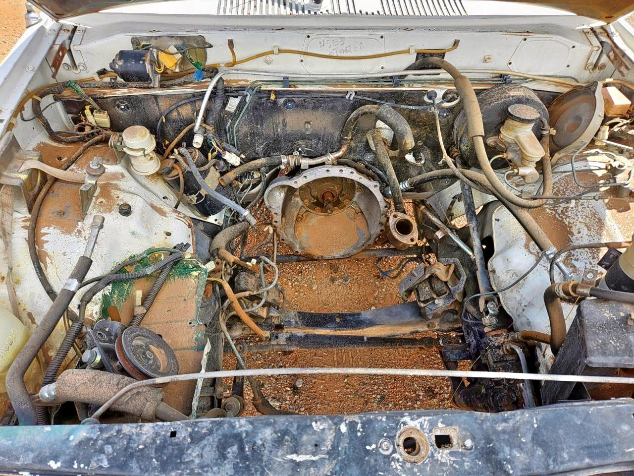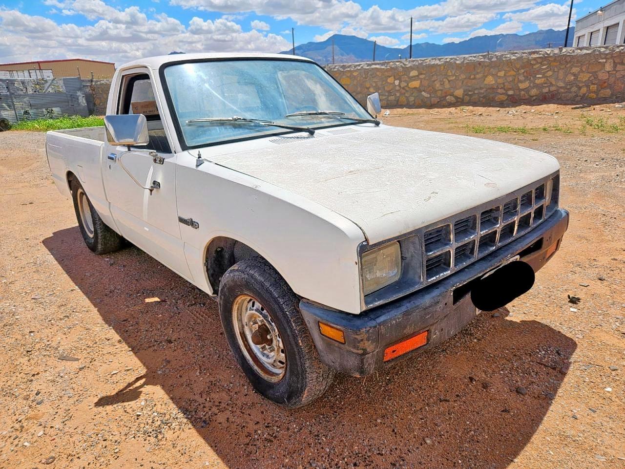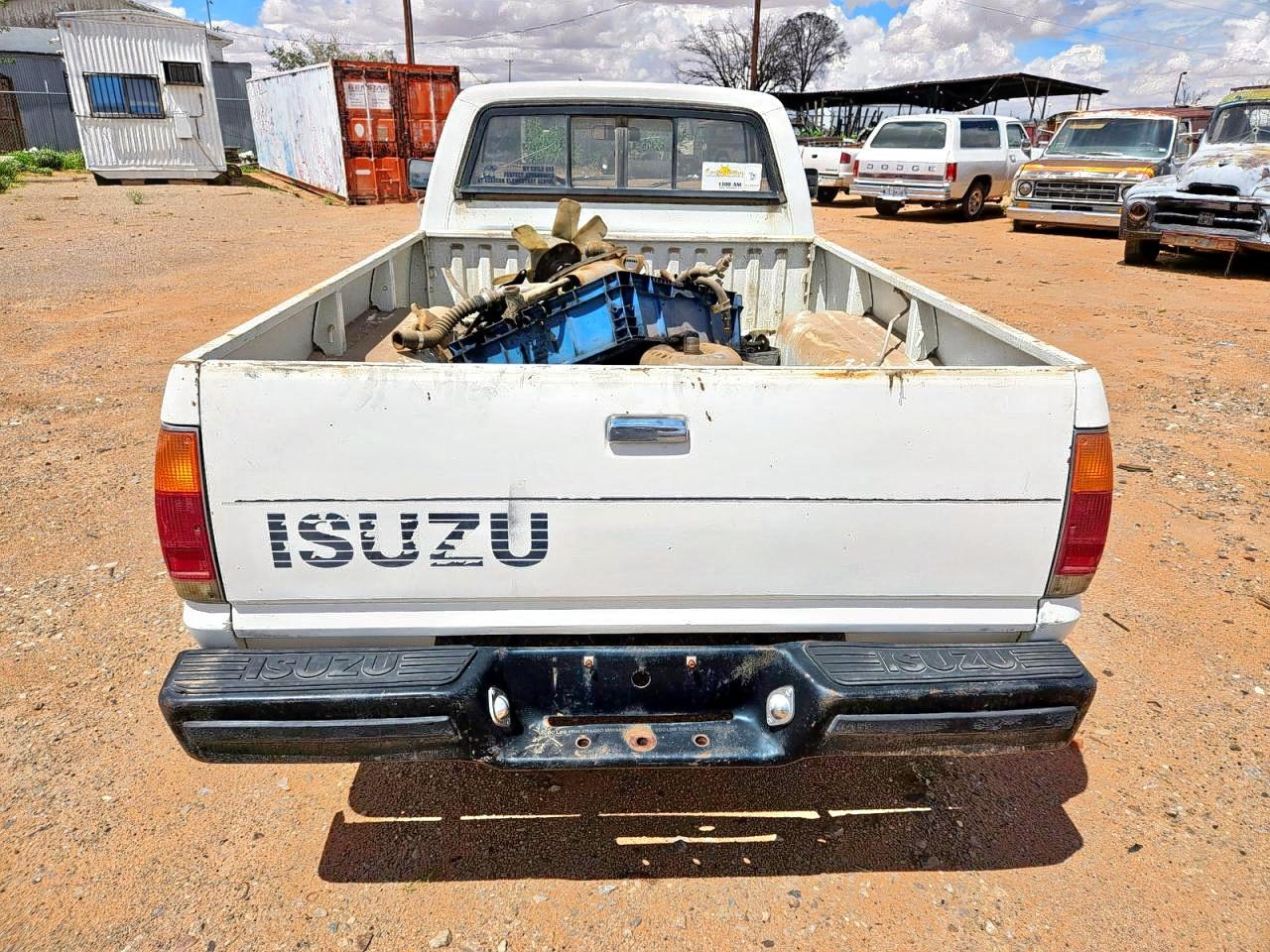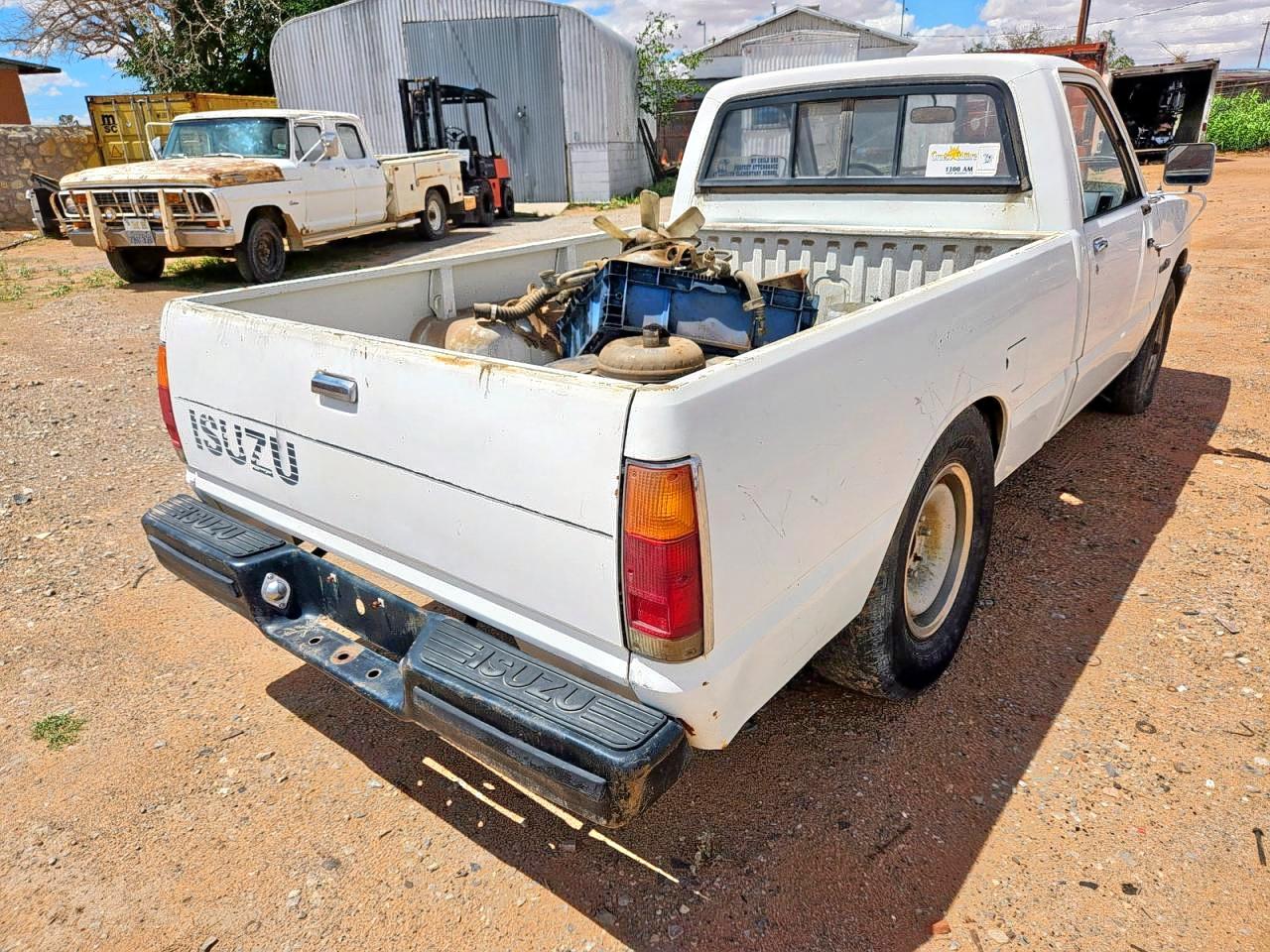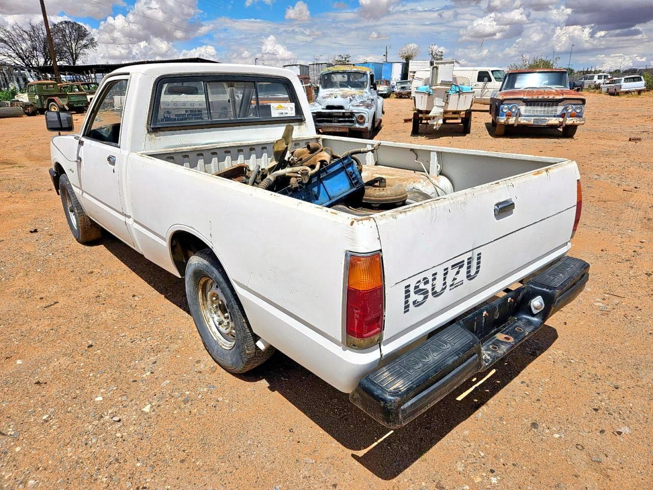 FairThis 1987 ISUZU PUP, appears to be in a rough state. The exterior is primarily white, showing signs of wear and tear. The vehicle has been stripped of many components, leaving it in a state of disrepair. The interior condition is poor, and the overall state reflects significant damage. The wheels appear to be in decent condition. The lights and glasses have visible damage or wear.