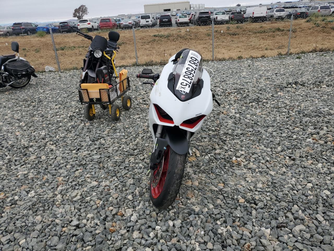 Fair2021 DUCATI PANIGALE V. The bike is white, classified as Run & Drive Verified. Primary damage includes SIDE, with secondary damage on the FRONT END. The bike shows signs of use and the need for repairs. The vehicle's exterior condition is assessed as Fair due to the visible damage. The interior condition is assessed as Good, with minor signs of wear. The overall state is Fair, suggesting a need for repair but drivable.