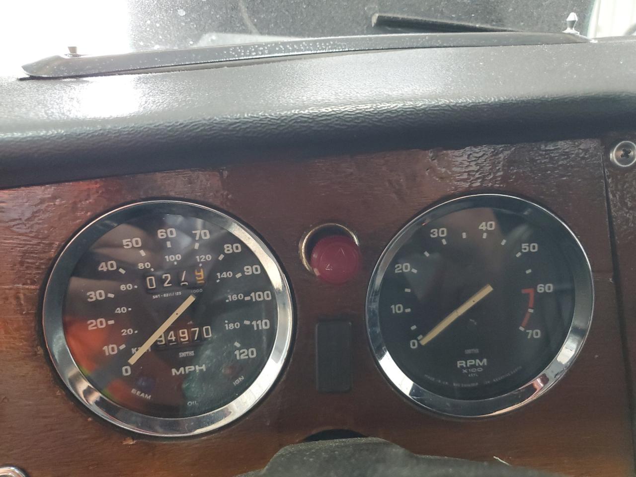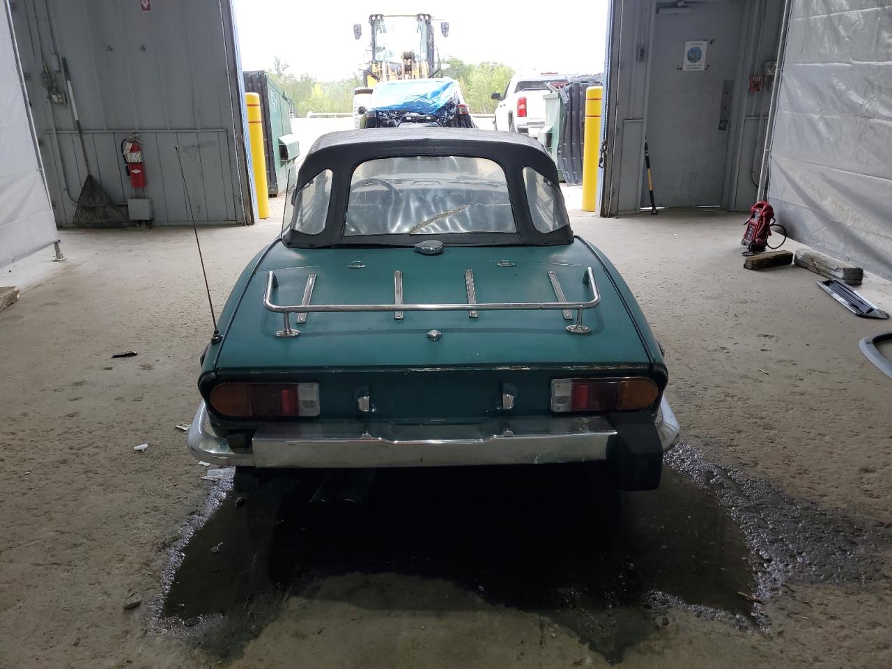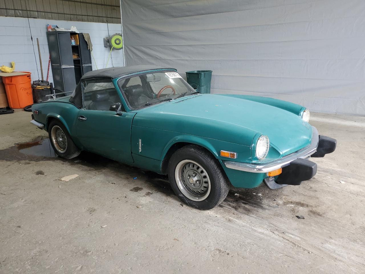 The Triumph Spitfire 1977 shows mechanical issues alongside visible exterior and interior damage. The exterior has moderate damage, the interior has wear and tear. The car may be drivable after repairs.
