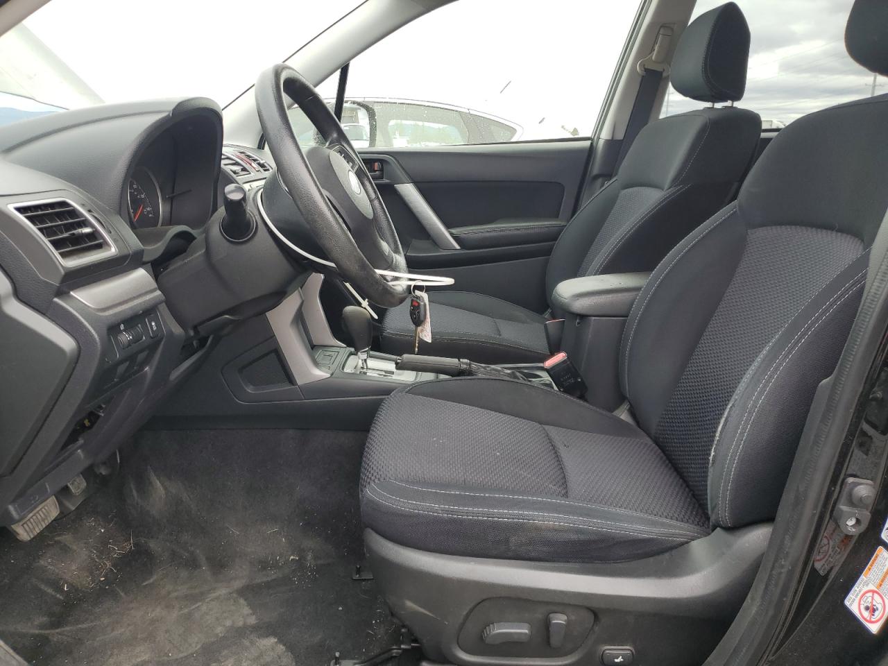 Fair2016 Subaru Forester 2 with rear end damage. The vehicle is black and has a Run & Drive Verified status. The primary damage is to the rear end, with no secondary damages noted. The vehicle's body panels show damage, but the wheels, lights, and glasses appear to be intact. Overall, the car presents with moderate damage. The interior shows minor wear consistent with its age and mileage. The vehicle is drivable but requires repairs to the rear. The airbag is unknown condition. Damages include rear end impact. Search Keywords: Subaru Forester, 2016, rear end damage, black, drivable, body damage, Fair condition.