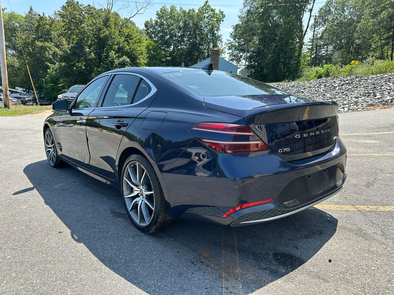 GoodThe GENESIS G70 BASE 2023 is a sleek blue sedan with minor cosmetic imperfections. The vehicle is a Run & Drive Verified car, indicating it's in working condition. The exterior shows minor dents and scratches, classified as body damage. The interior appears well-maintained with minimal wear and tear. Overall, the car is in good condition, suitable for someone looking for a reliable and stylish vehicle with some cosmetic needs. The car requires replacement of one or two elements