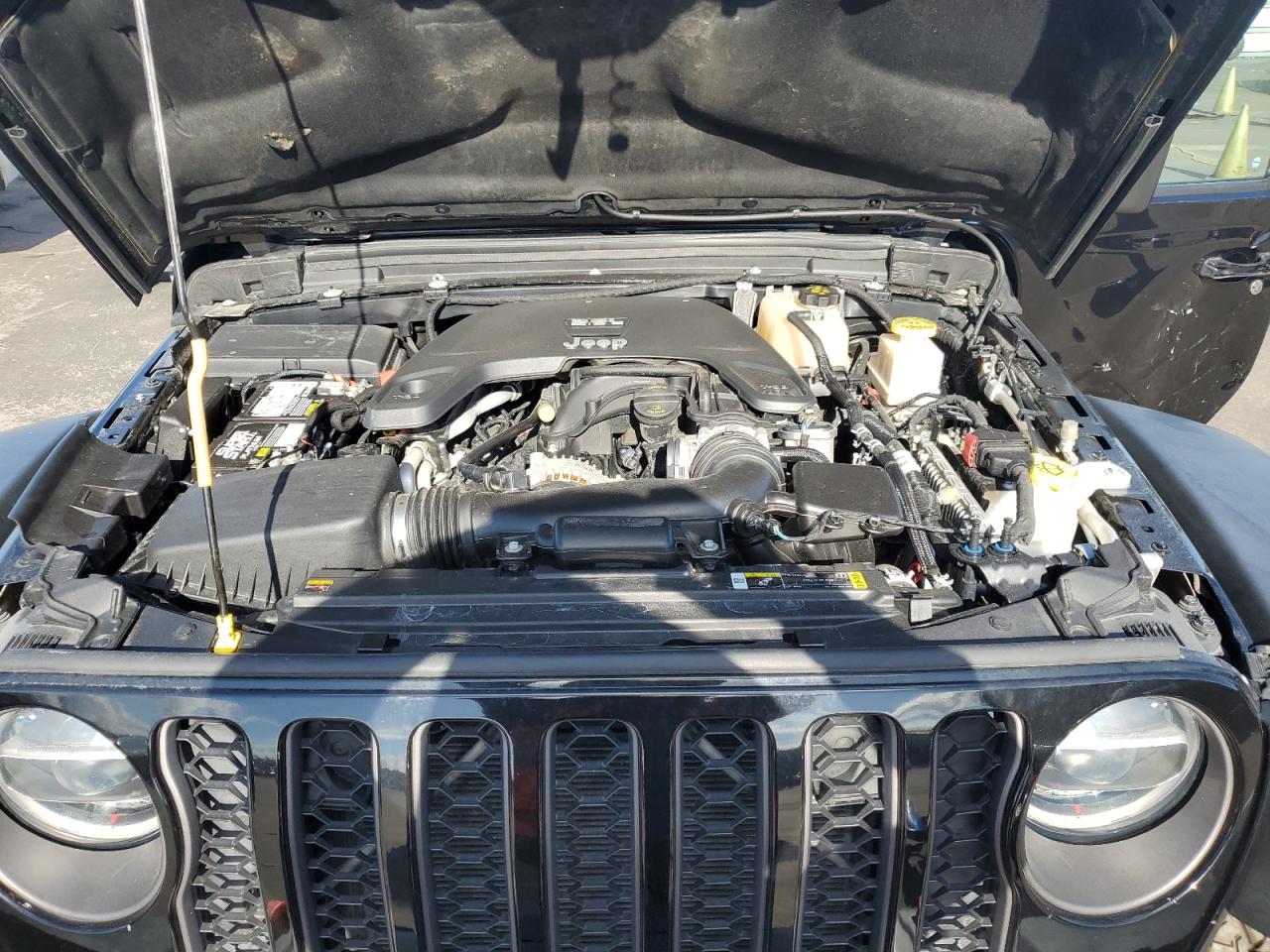 Good2021 Jeep Gladiator, black, showing side damage. The vehicle's body panels have visible damage. The interior appears to be in good condition. Overall, the vehicle is in fair condition, with moderate visible damage. This Jeep Gladiator has cosmetic damages, body damage, and is drivable.