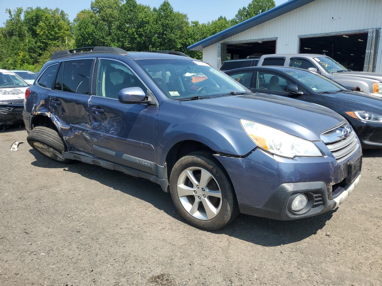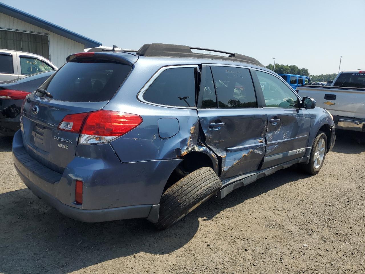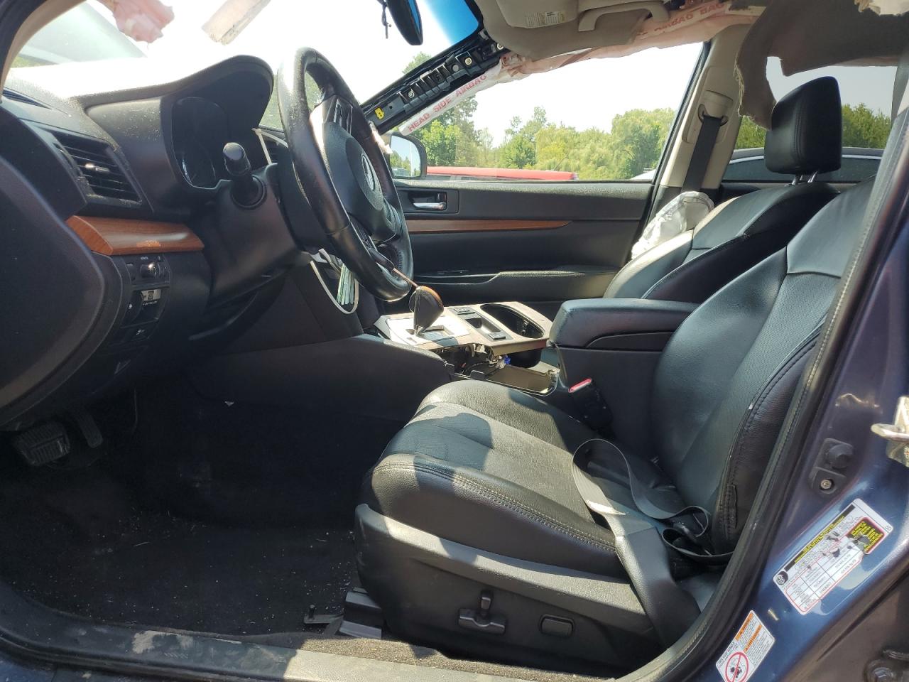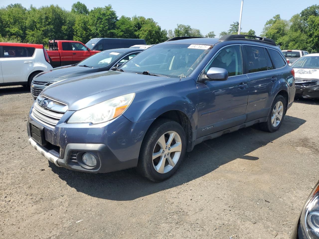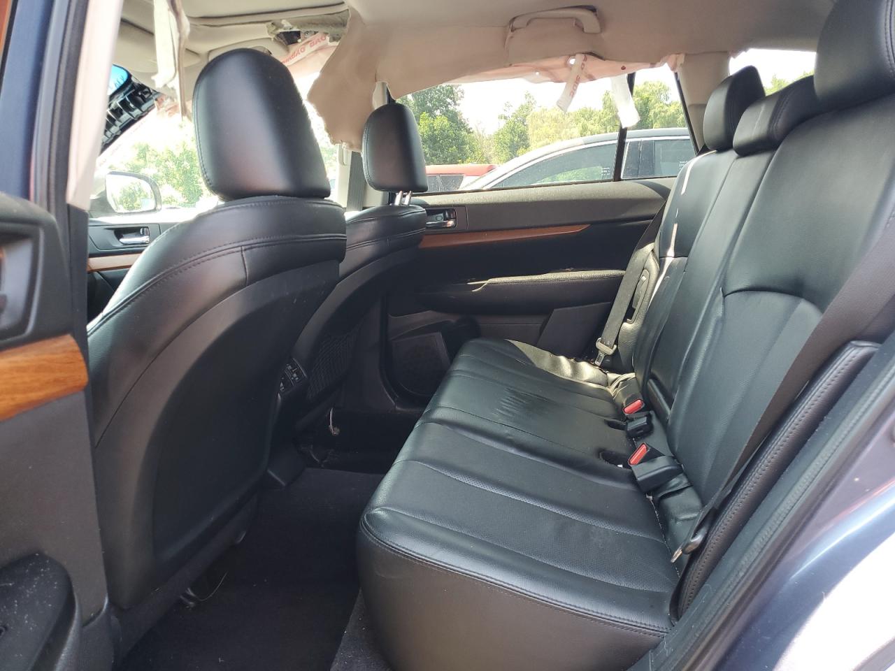 FairThis is a blue 2014 Subaru Outback 2.5i Limited, heavily damaged. The primary damage is to the side, and the secondary damage is to the rear end. The car's engine starts. The vehicle presents significant damage requiring considerable repair. The car's interior shows signs of wear and tear but is overall in decent shape. The airbags are not deployed. The wheels appear to be intact, but the body panels are severely damaged, the lights and glasses have damage.