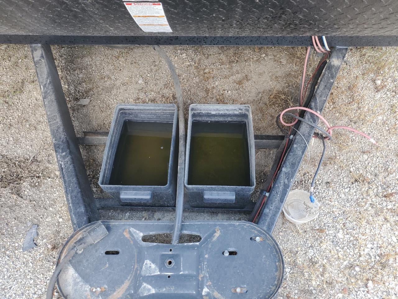 The vehicle has sustained significant water/flood damage, with visible damage to the side panels. The interior shows signs of water damage as well.