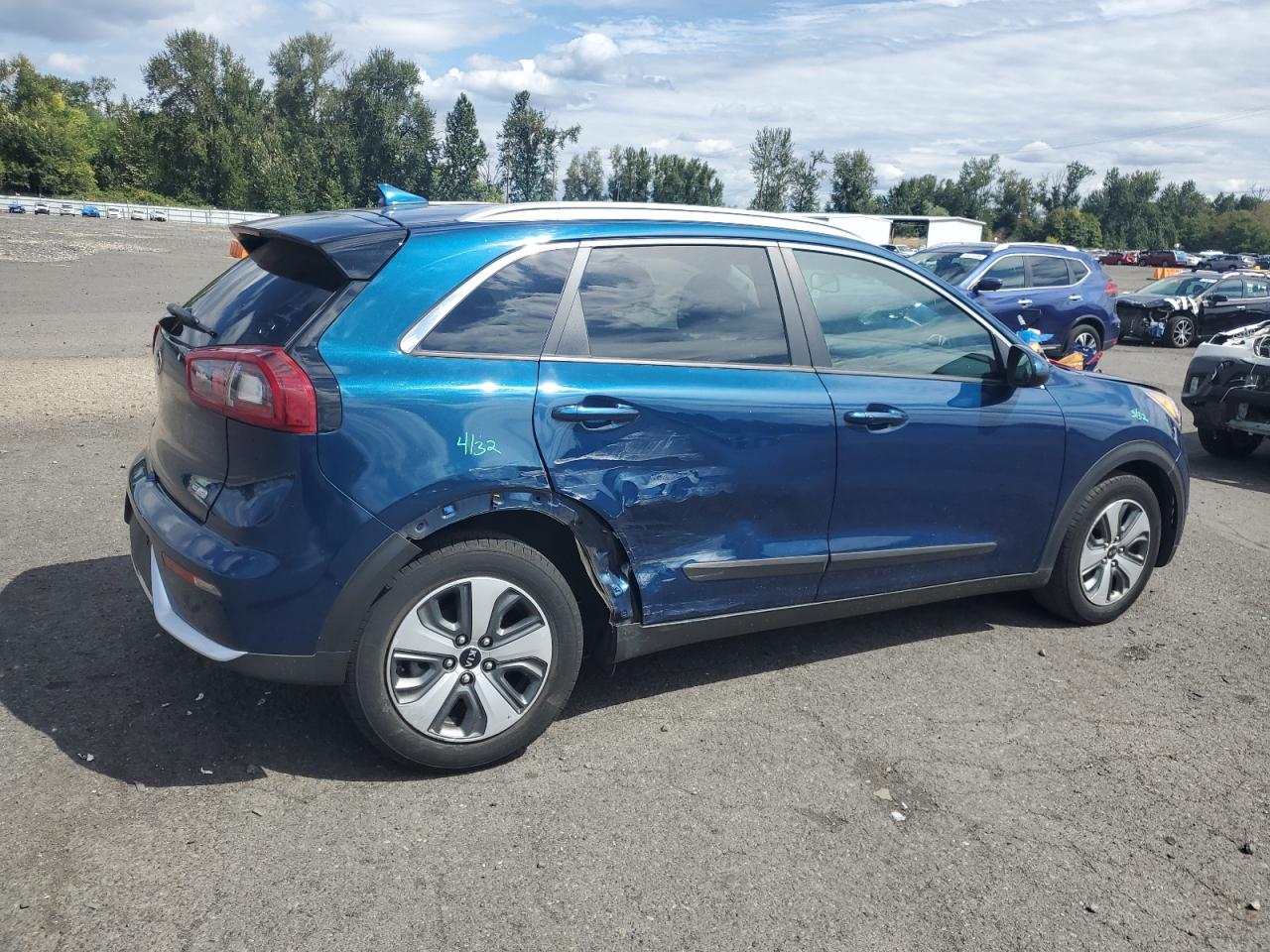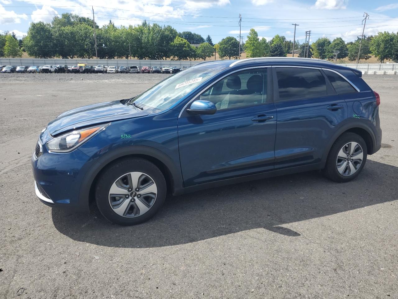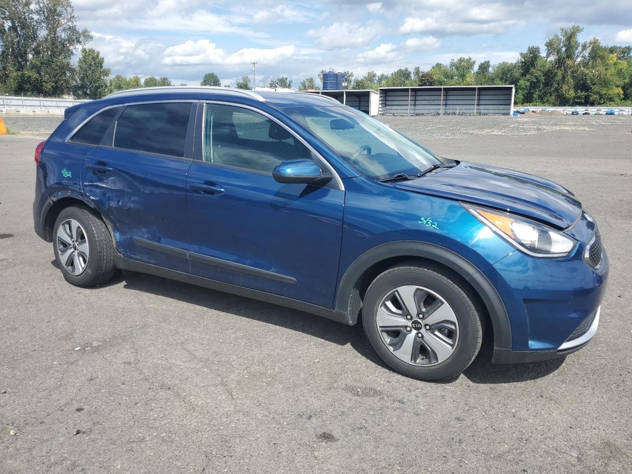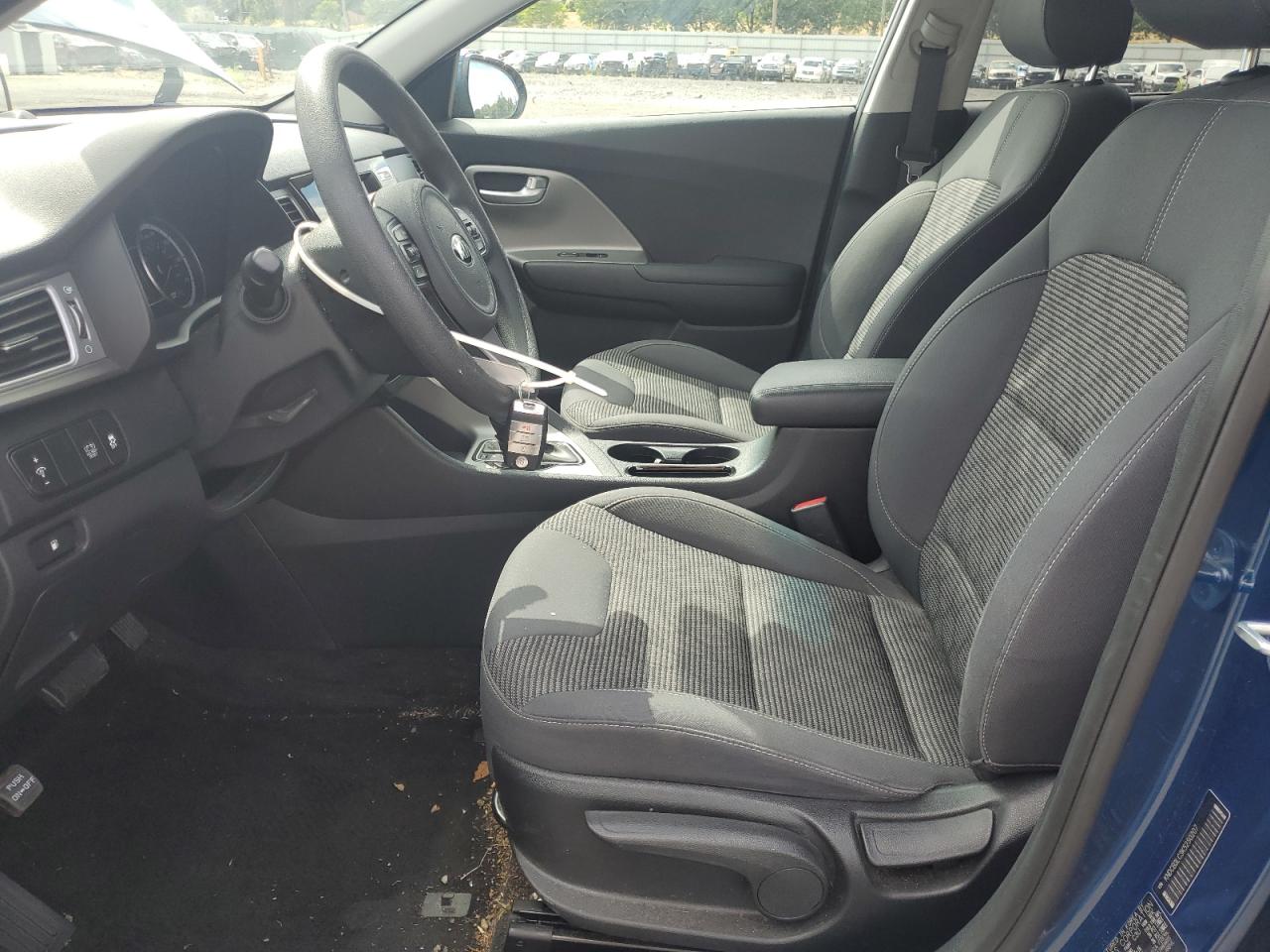 FairThis is a 2019 KIA NIRO FE. The primary damage is to the SIDE of the car with no secondary damage. The color of the car is blue, and it starts with a Run & Drive Verified code. The vehicle's damage is categorized as Body damage. The exterior condition is Fair, and the interior condition is Good. Overall, the car's condition is Fair. Wheels appear fine, lights and glasses seem okay. The interior condition is rated as Good, with some wear and tear.