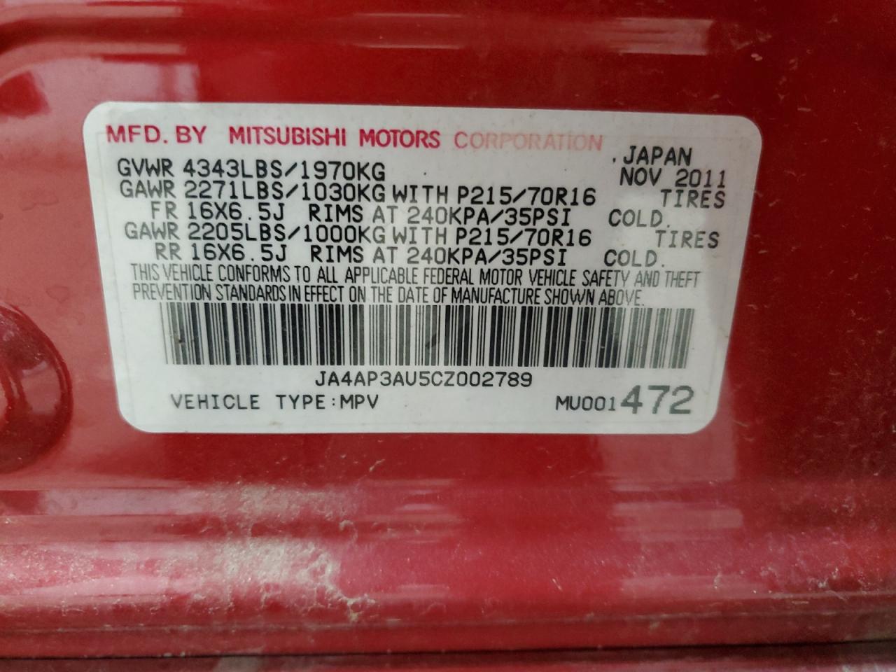 JA4AP3AU5CZ002789Final Bid