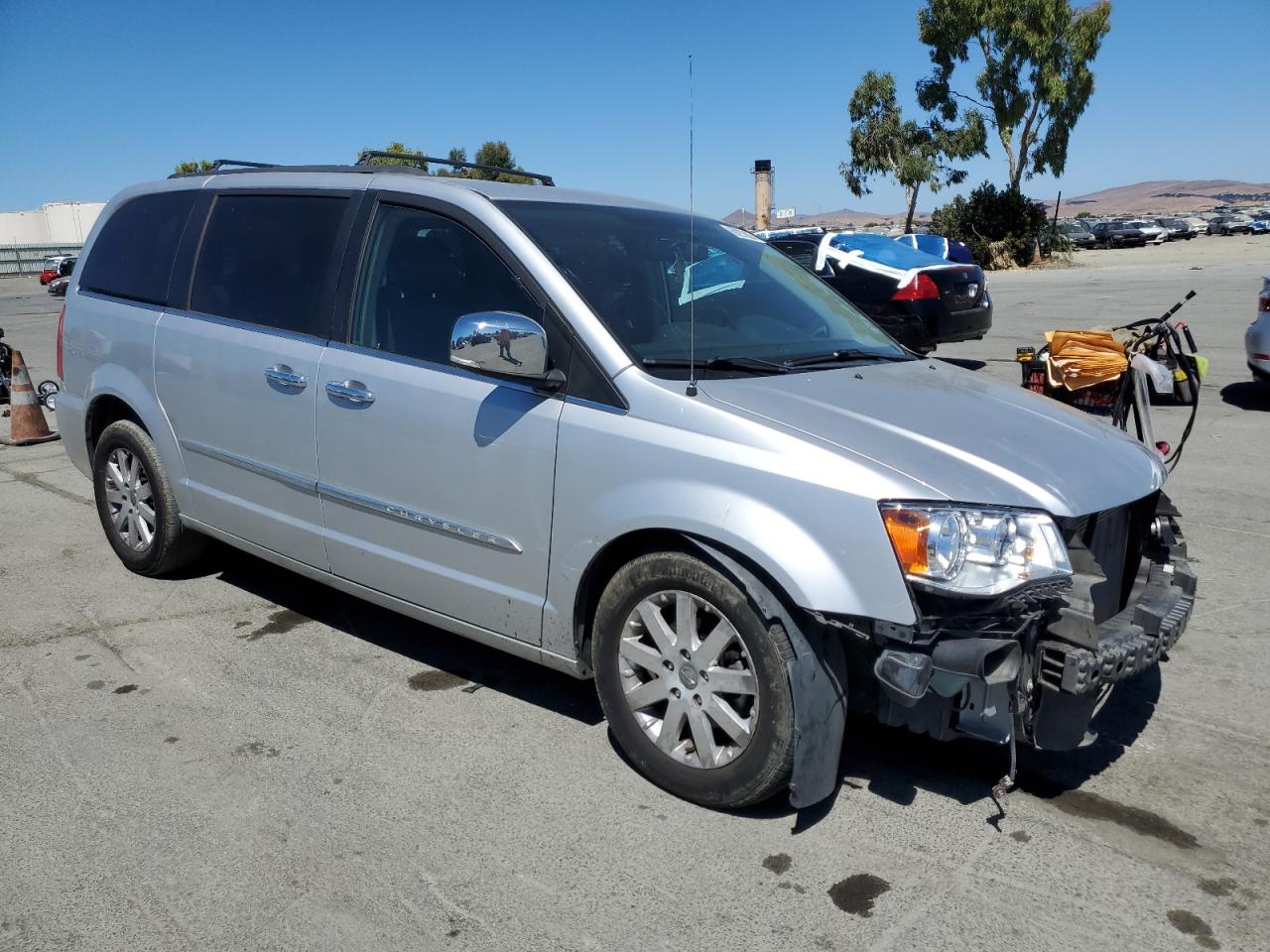 FairThis is a silver 2011 CHRYSLER TOWN & COUNTRY TOURING L. The vehicle has sustained front-end and side damage. It appears the vehicle starts. The wheels appear intact. The headlights and glass are present. The interior shows minimal wear and tear.