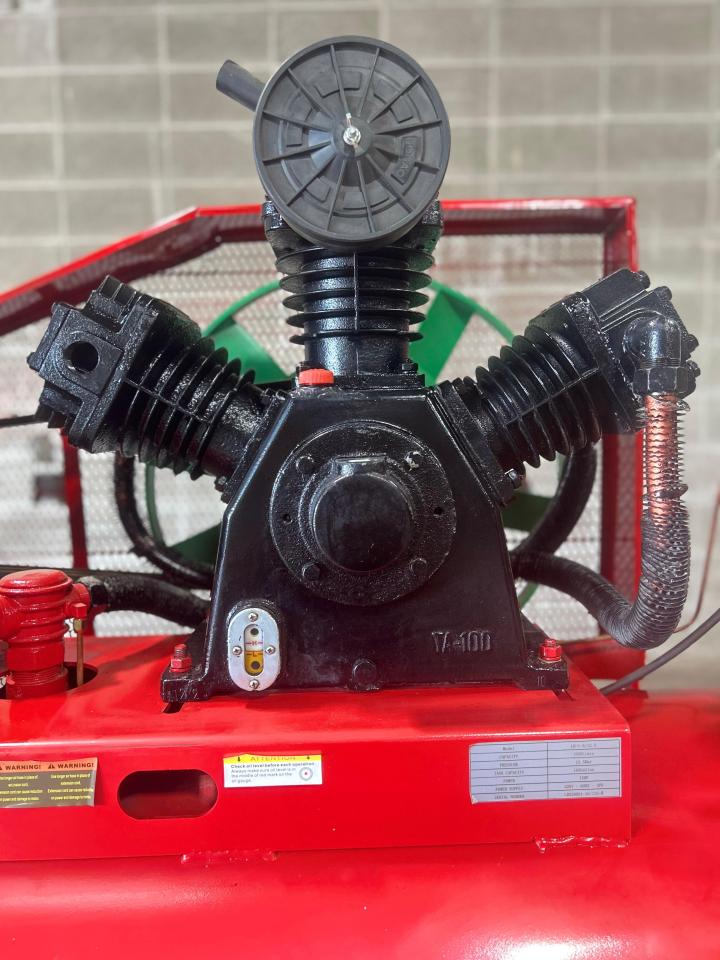 Overall damage is present throughout the exterior. Body panels show wear and tear, with cosmetic imperfections. The compressor is operational and seems to be drivable.