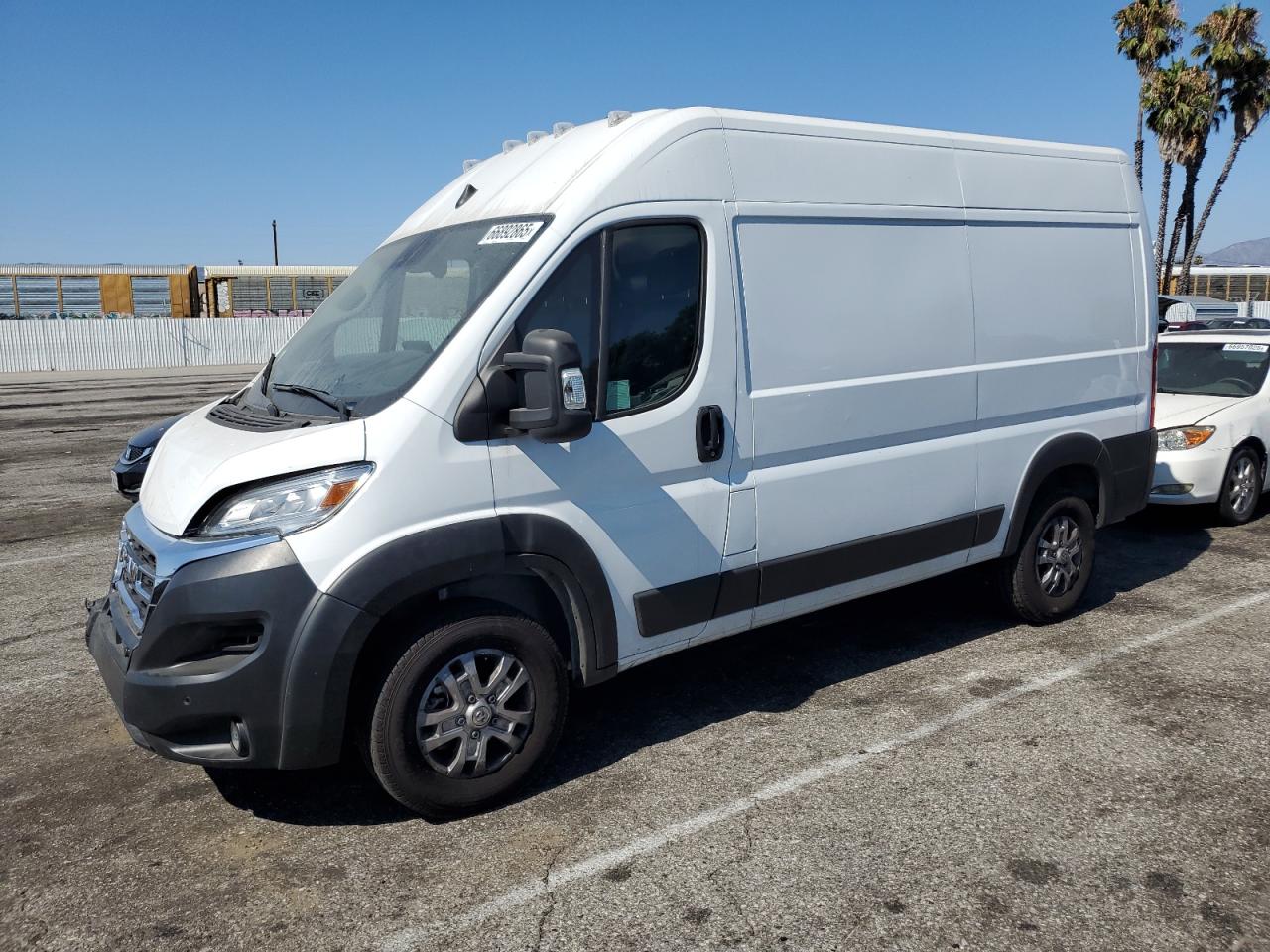 FairThis is a white 2024 RAM ProMaster van. It has sustained front-end damage, making it a potential candidate for repair. The vehicle starts and drives, as indicated by the 'Run & Drive Verified' status. The exterior shows moderate damage, and the interior has visible damage as well, including deployed airbags. The wheels appear to be in good condition.