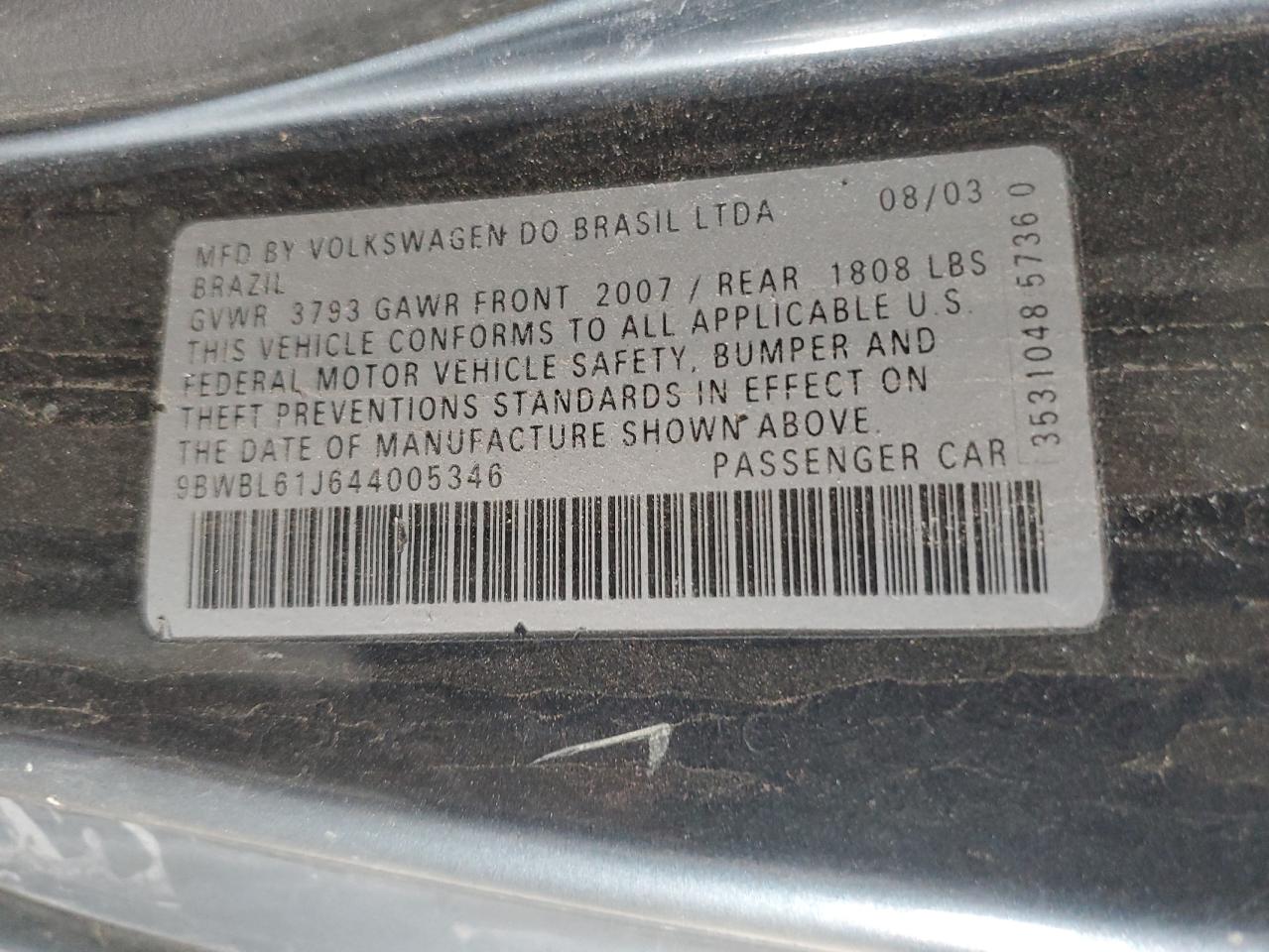 9BWBL61J644005346Final Bid