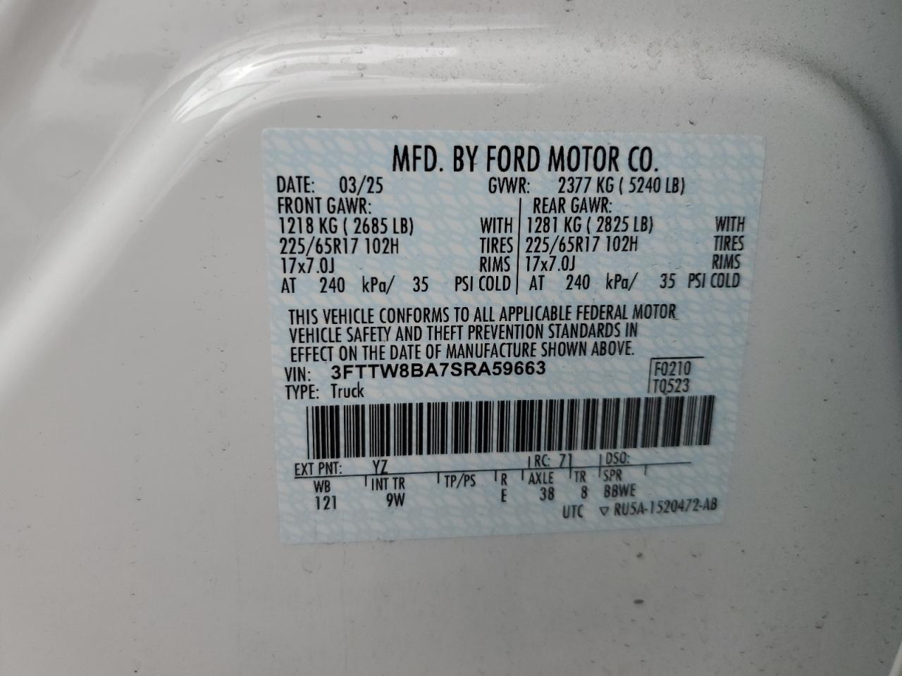 3FTTW8BA7SRA59663Final Bid