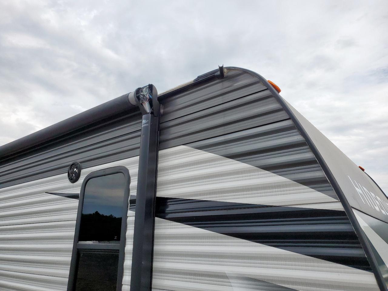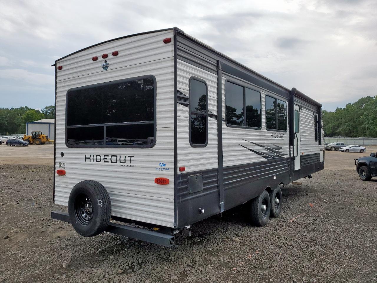 GoodThe 2021 KEYSTONE HIDEOUT, in white, shows signs of hail damage, primarily impacting the exterior. There's no visible secondary damage. The wheels, lights, and glasses appear to be in good condition. The vehicle is a travel trailer, designed for recreational use. The interior presents minimal wear and tear. Summary: The KEYSTONE HIDEOUT has hail damage on the body panels. Overall, the vehicle is in good condition, with a well-maintained interior.