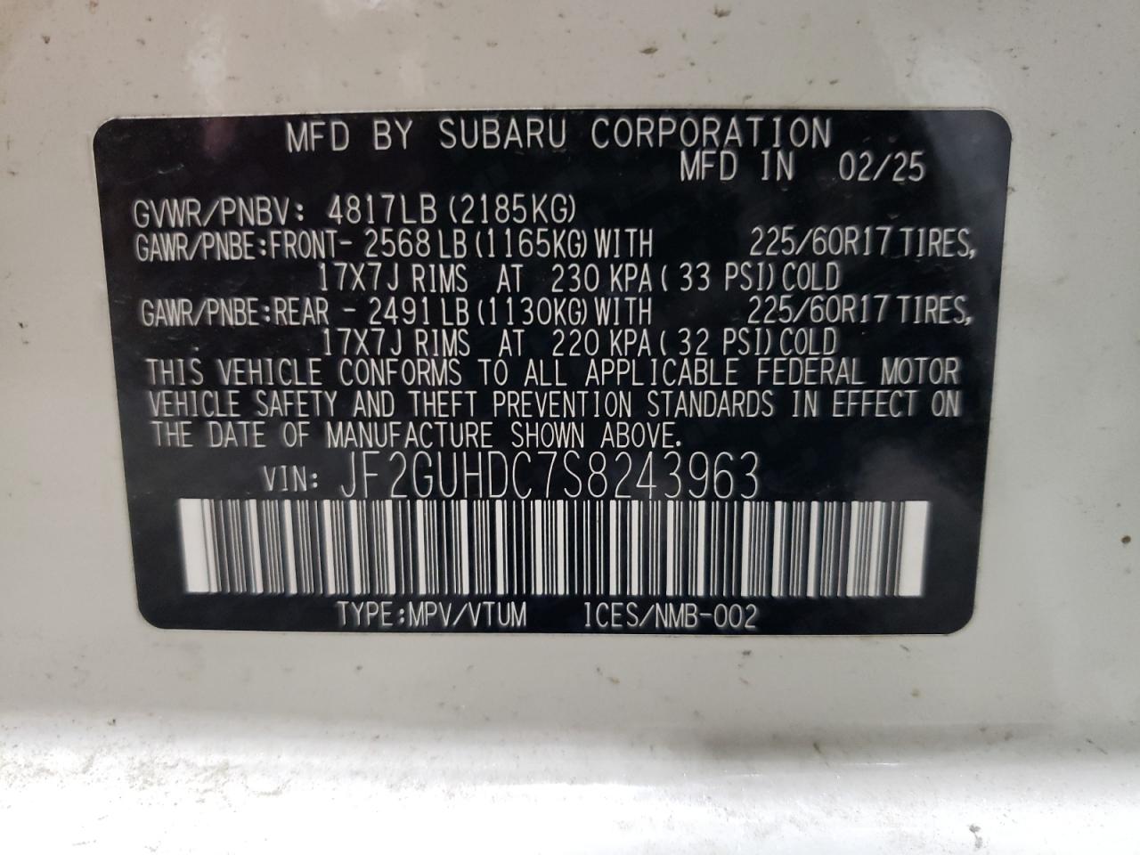JF2GUHDC7S8243963Final Bid