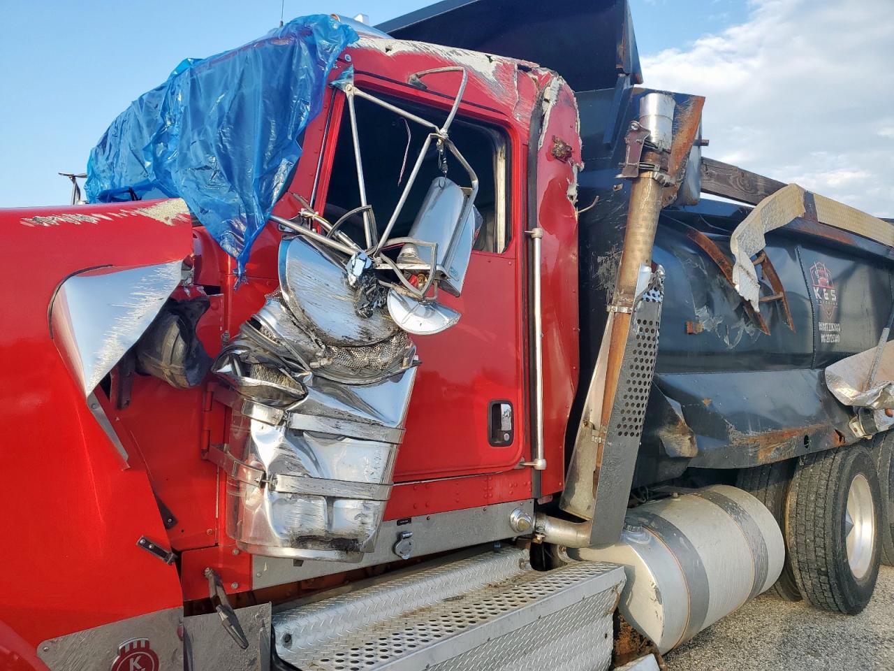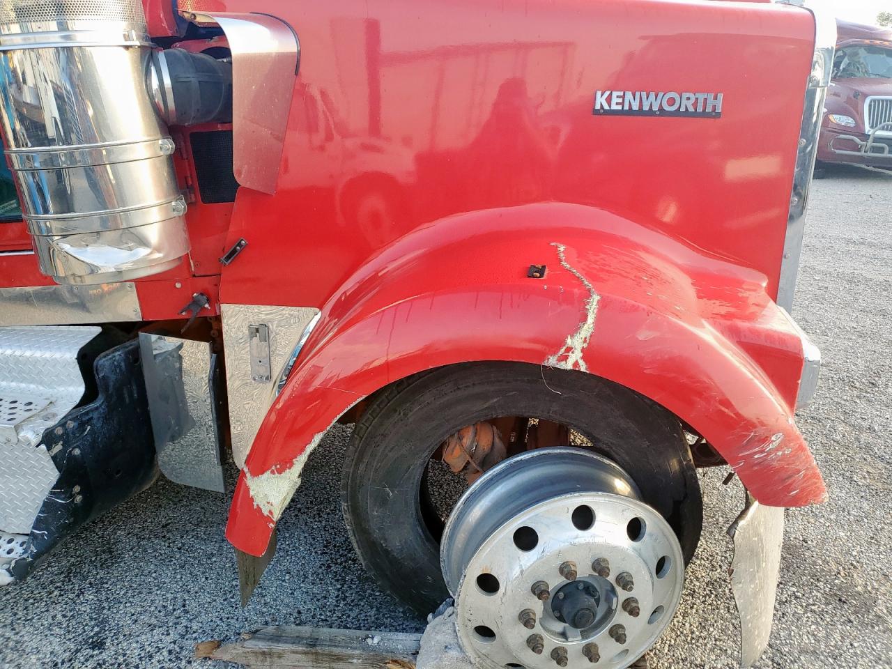 PoorThis is a severely damaged 2012 Kenworth W900. The primary damage is widespread, affecting the body panels and structure, the cab shows significant crush damage. The red paint is marred with visible damage. The vehicle’s condition indicates it has suffered significant impact and requires extensive repairs. The wheels appear to be present but the tires condition is not clear. The glasses seems to be cracked and broken. The interior shows signs of damage. It's unlikely to be drivable in its current state.