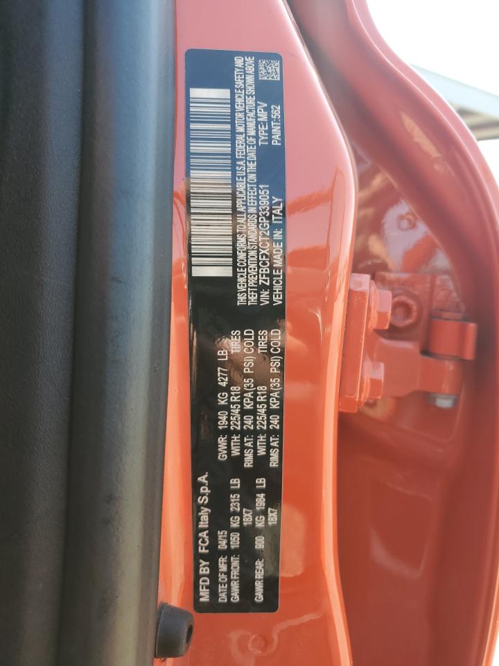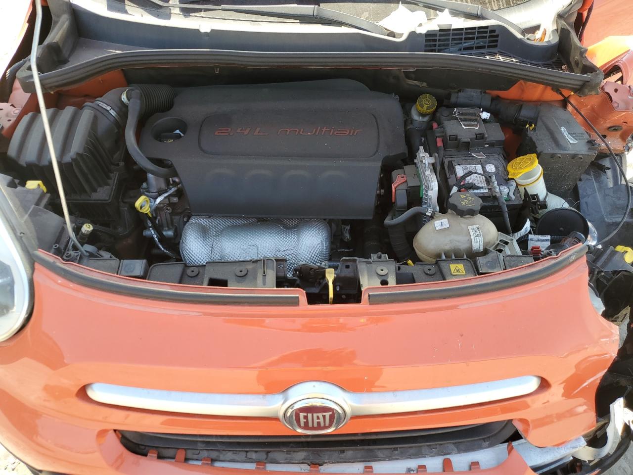 FairThe 2016 FIAT 500X TREKK, orange in color, exhibits front-end damage. **Exterior:** The front end shows significant damage, with compromised panels and components. The wheels appear to be in good condition. Lights and glasses seem intact, with the extent of damage affecting the front. **Interior:** The interior shows minimal wear and tear. **Overall:** The vehicle's overall condition is assessed as Fair due to the front-end damage. The car might still be drivable. **Summary:** Damaged FIAT 500X TREKK, featuring body damage in front and very good interior condition. Keywords: accident, crash, damage, orange, drivable.