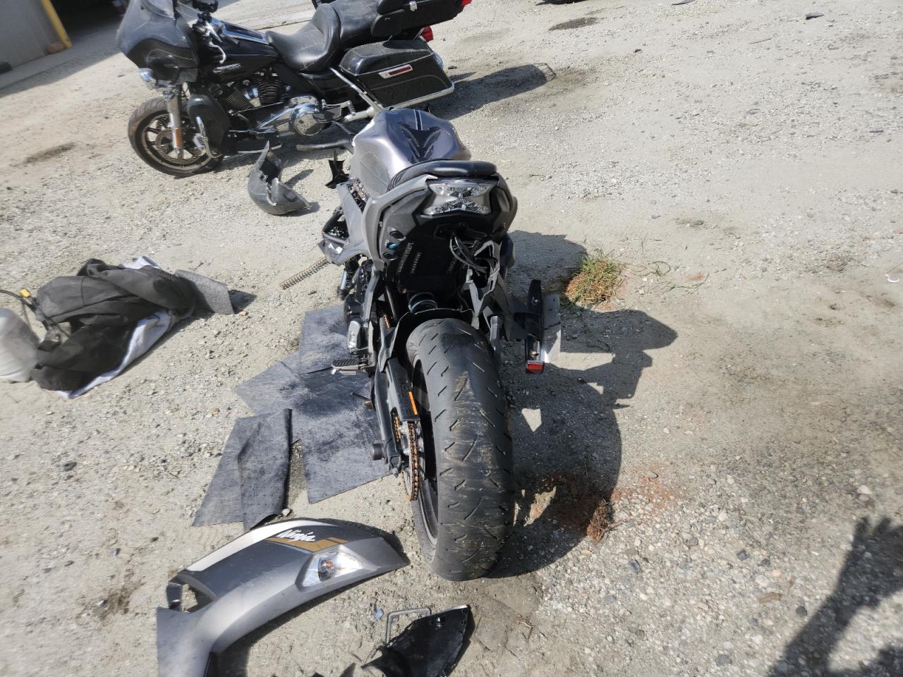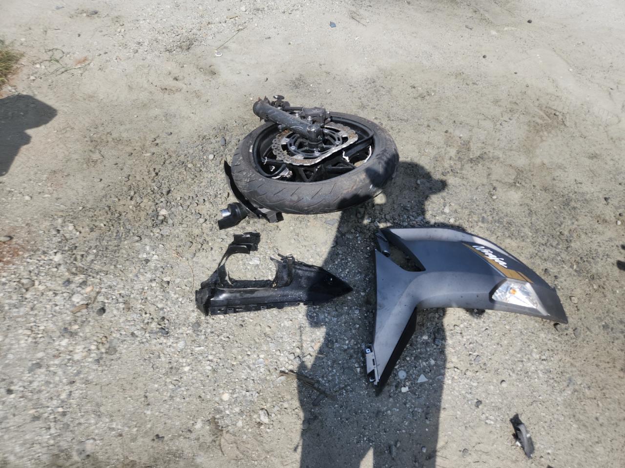 PoorThe KAWASAKI EX650 N 2021, color black, exhibits significant front-end and side damage. The front end is severely impacted, with extensive damage to the fairings, lights, and front frame components. Side damage is also evident, affecting body panels and potentially the frame. The motorcycle's overall state reflects considerable damage.