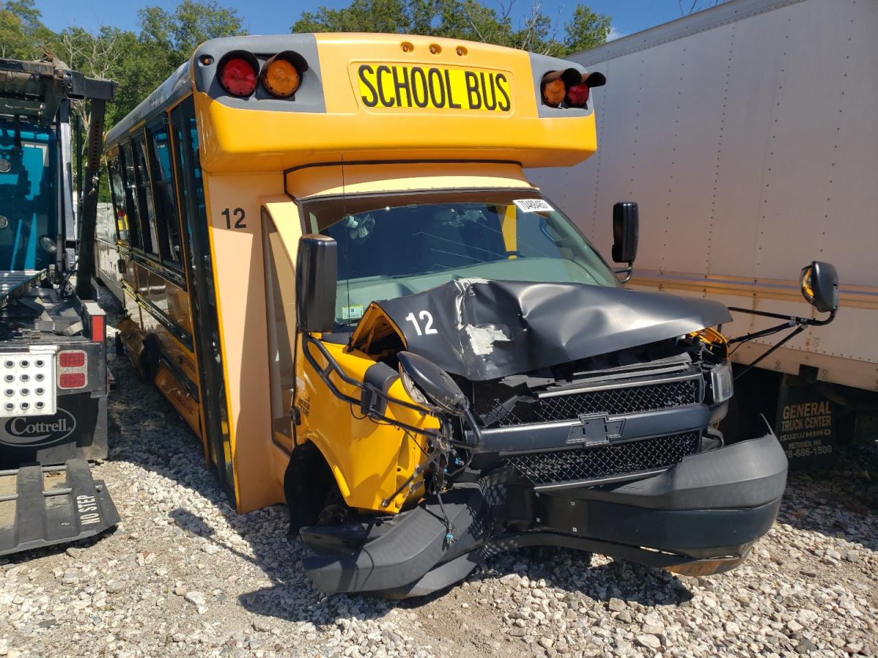 PoorThe 2019 CHEVROLET EXPRESS G3 school bus has sustained extensive damage, primarily to the front end and throughout the body. The vehicle is yellow. Based on the images, the bus appears to have been involved in a significant collision. The front end is severely crushed, with the hood, bumper, and front panels heavily damaged. The damage extends to the frame. The windshield and other glass are intact, but the structure around them is compromised. The bus has minor cosmetic damage overall. The interior shows minimal wear, and the seats are in good condition.