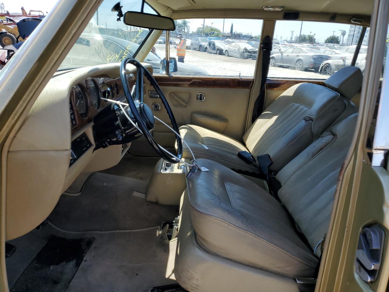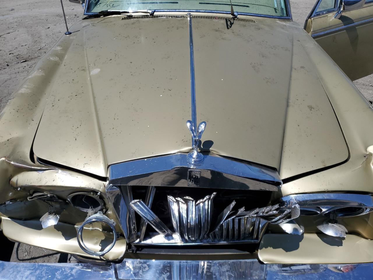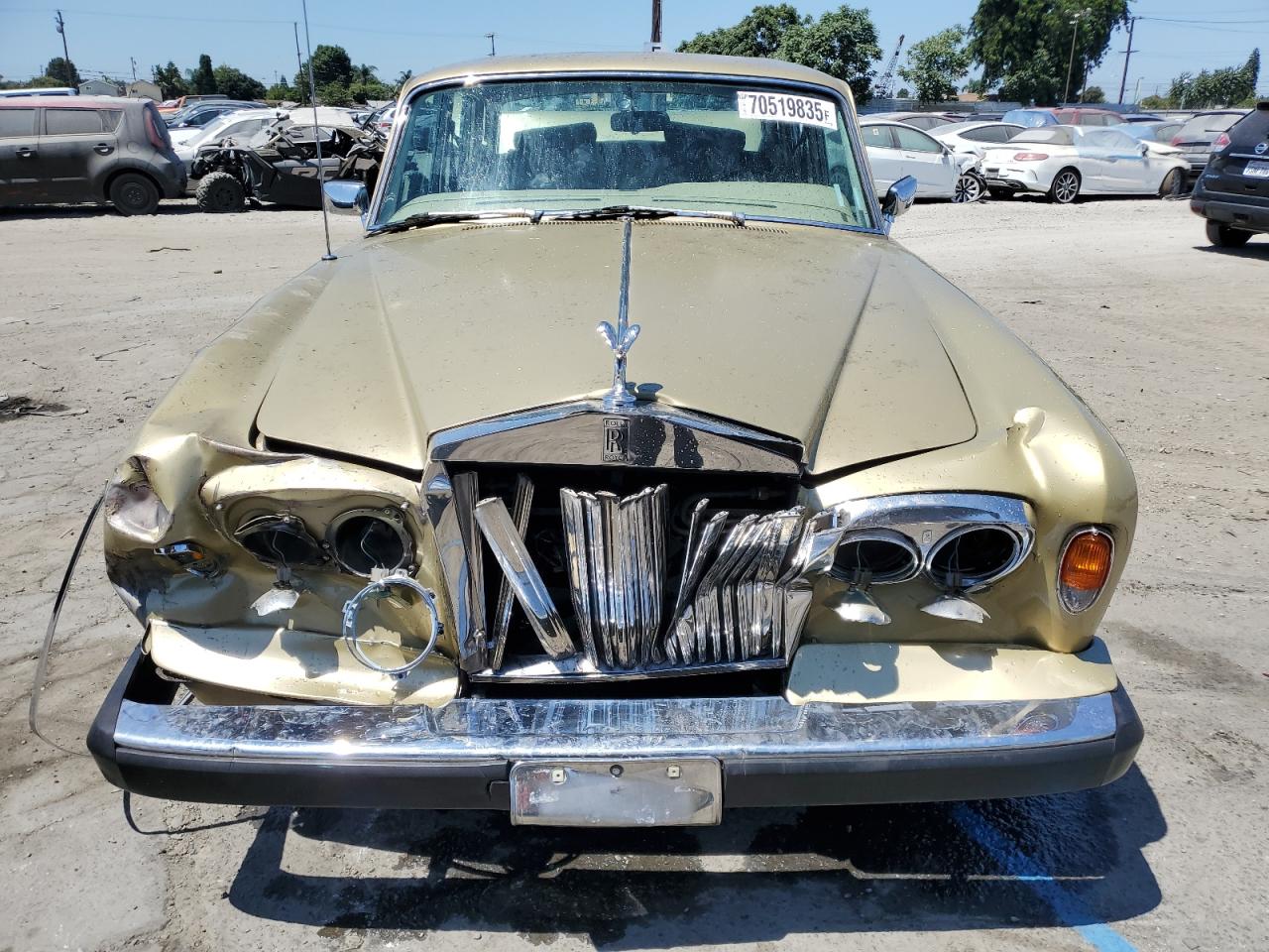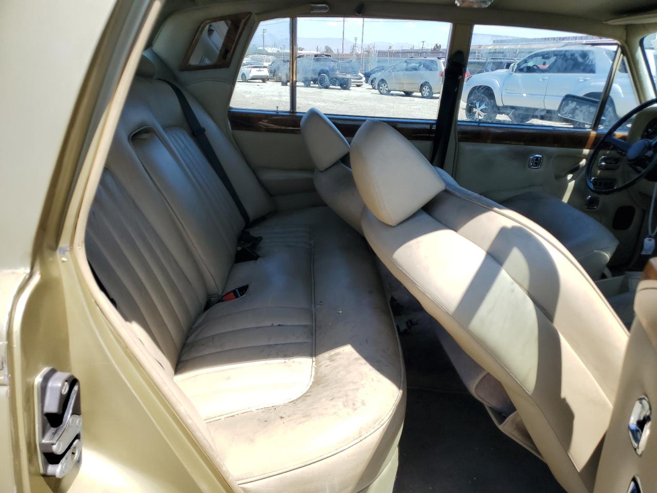 FairThis is a severely damaged 1980 Rolls-Royce Silver Shadow. The primary damage is to the rear end, with significant crushing and deformation of the body panels. Secondary damage is evident at the front, suggesting a collision from both ends. The car is gold. The wheels appear to be intact, but the extent of mechanical damage is unknown. Interior condition appears to be in better shape, showing normal wear and tear. However, the overall condition of the car is poor due to the extensive body damage. This classic luxury vehicle will require substantial repairs to restore it. The airbags' status can't be determined from the provided images.
