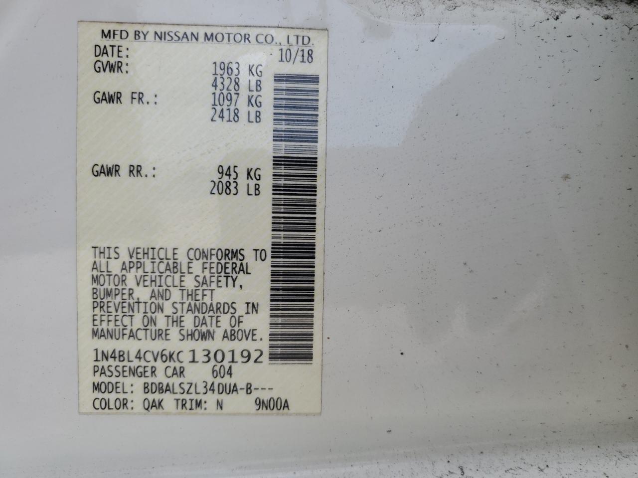 1N4BL4CV6KC130192Location