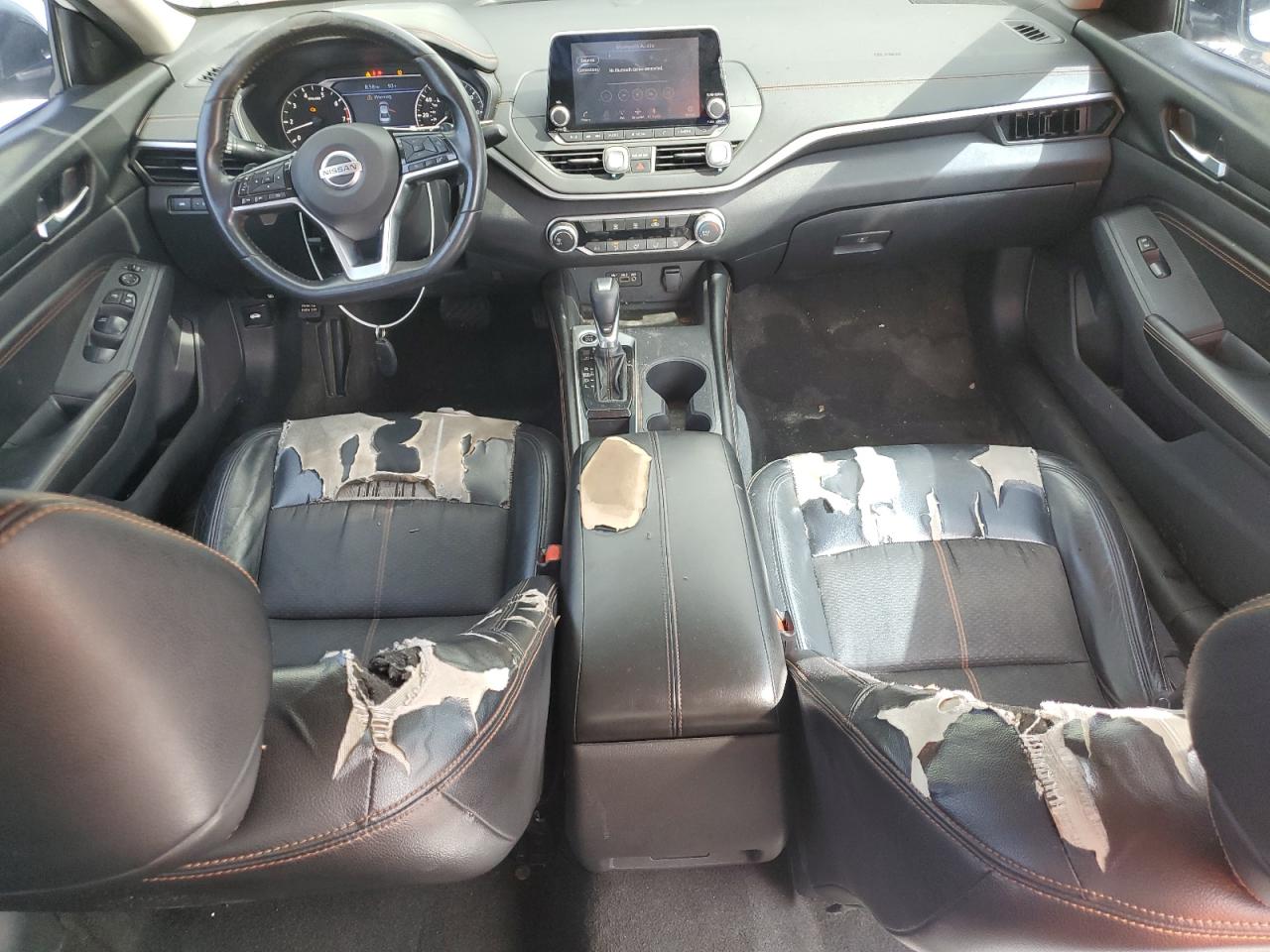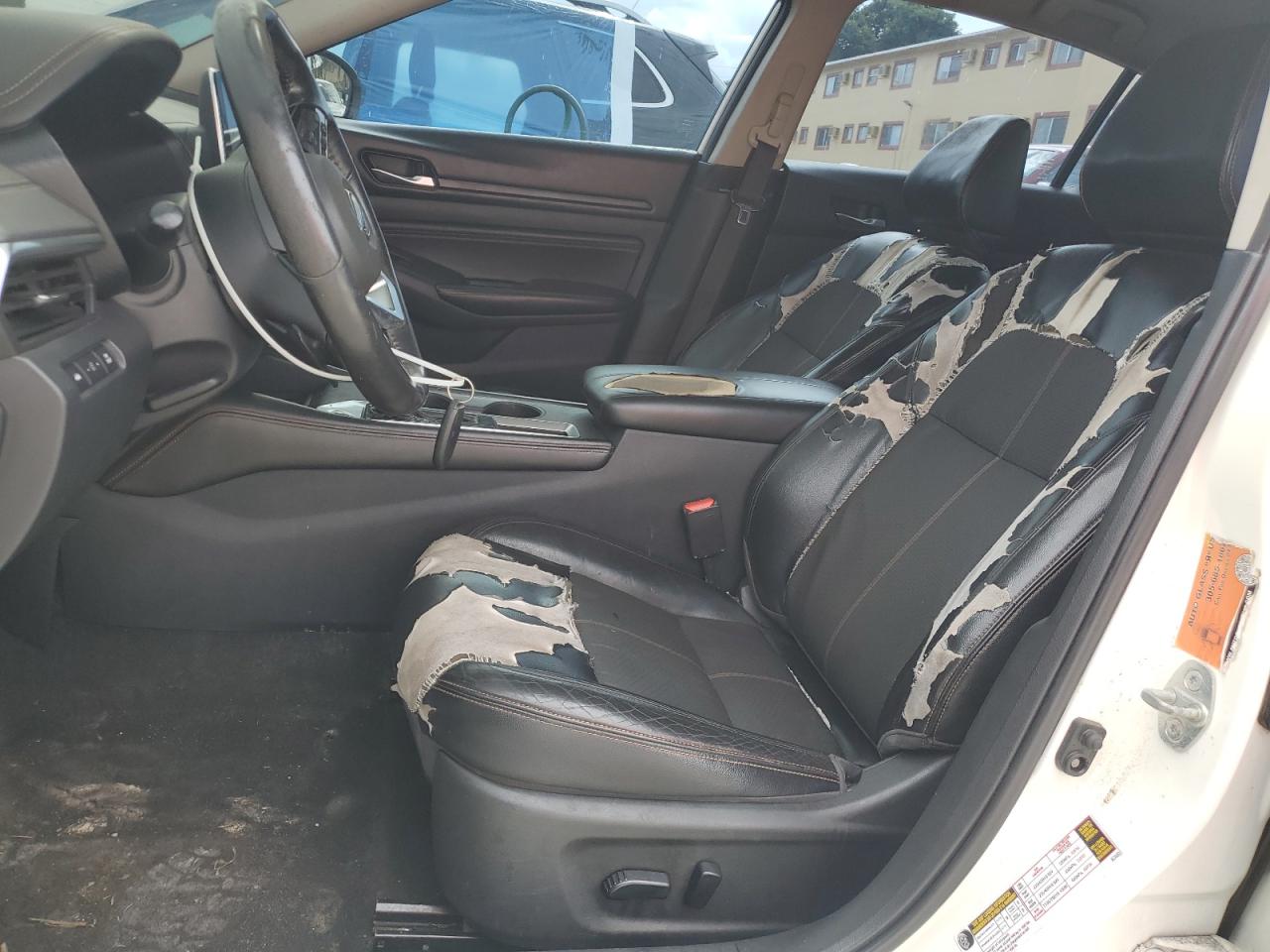 FairThis is a white 2019 Nissan Altima SR. The vehicle exhibits normal wear and tear. It starts and runs. The exterior has moderate damage. The interior shows significant wear and tear, including damage to the seats and dashboard. The wheels appear to be in acceptable condition.