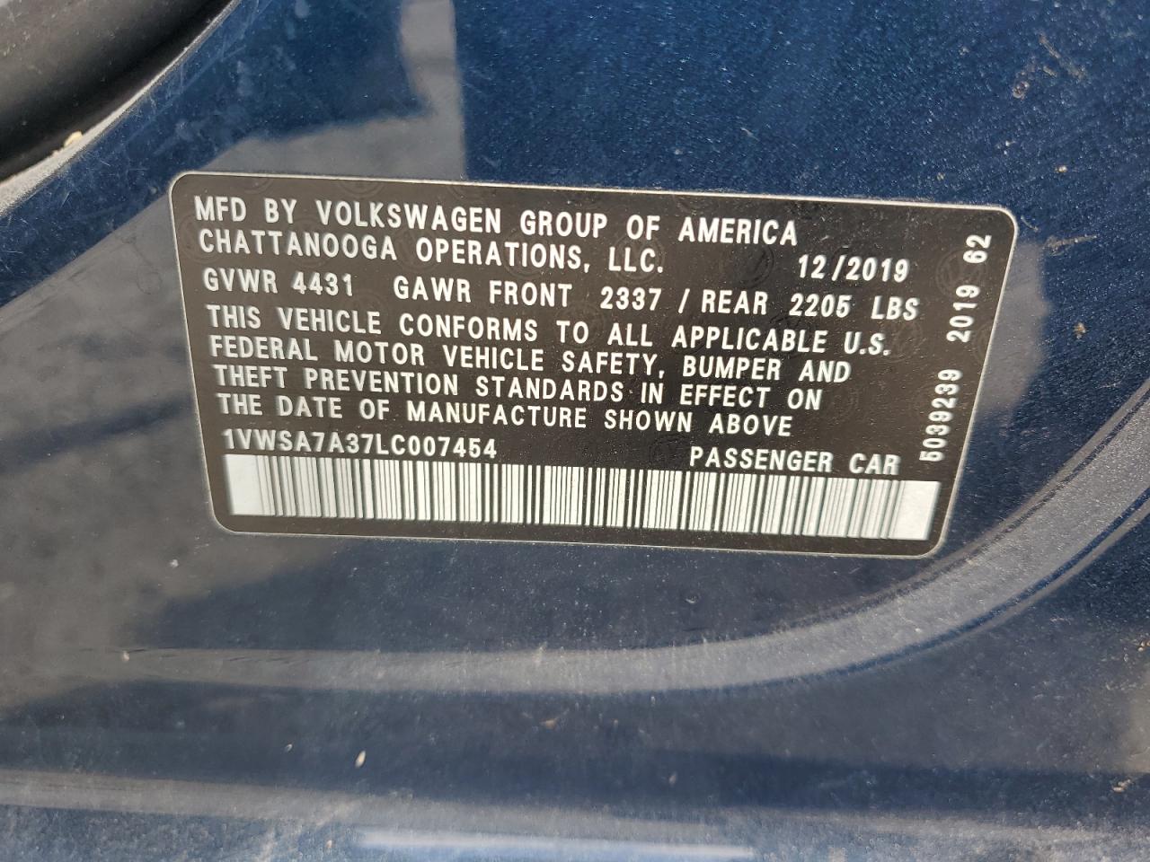 1VWSA7A37LC007454Final Bid