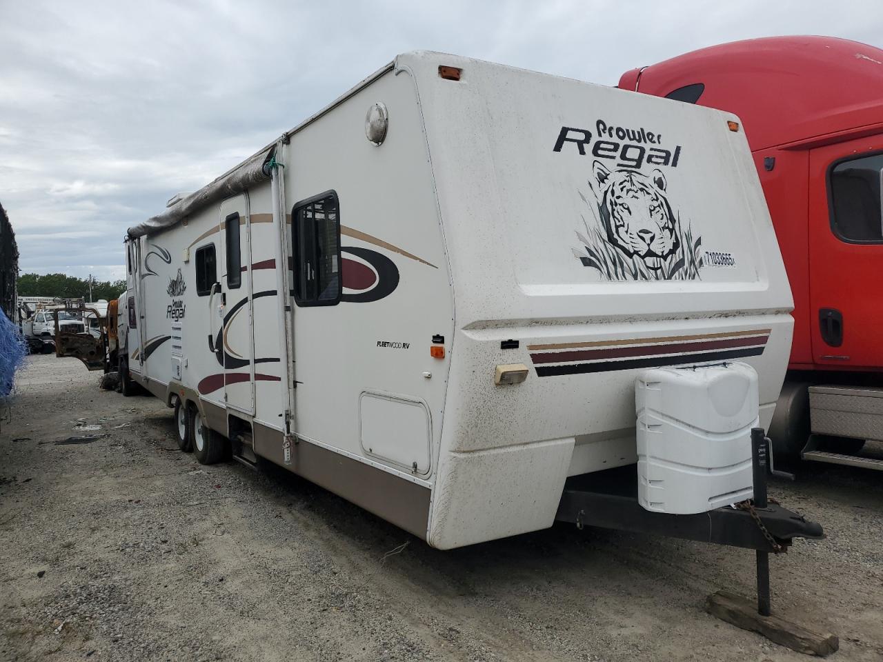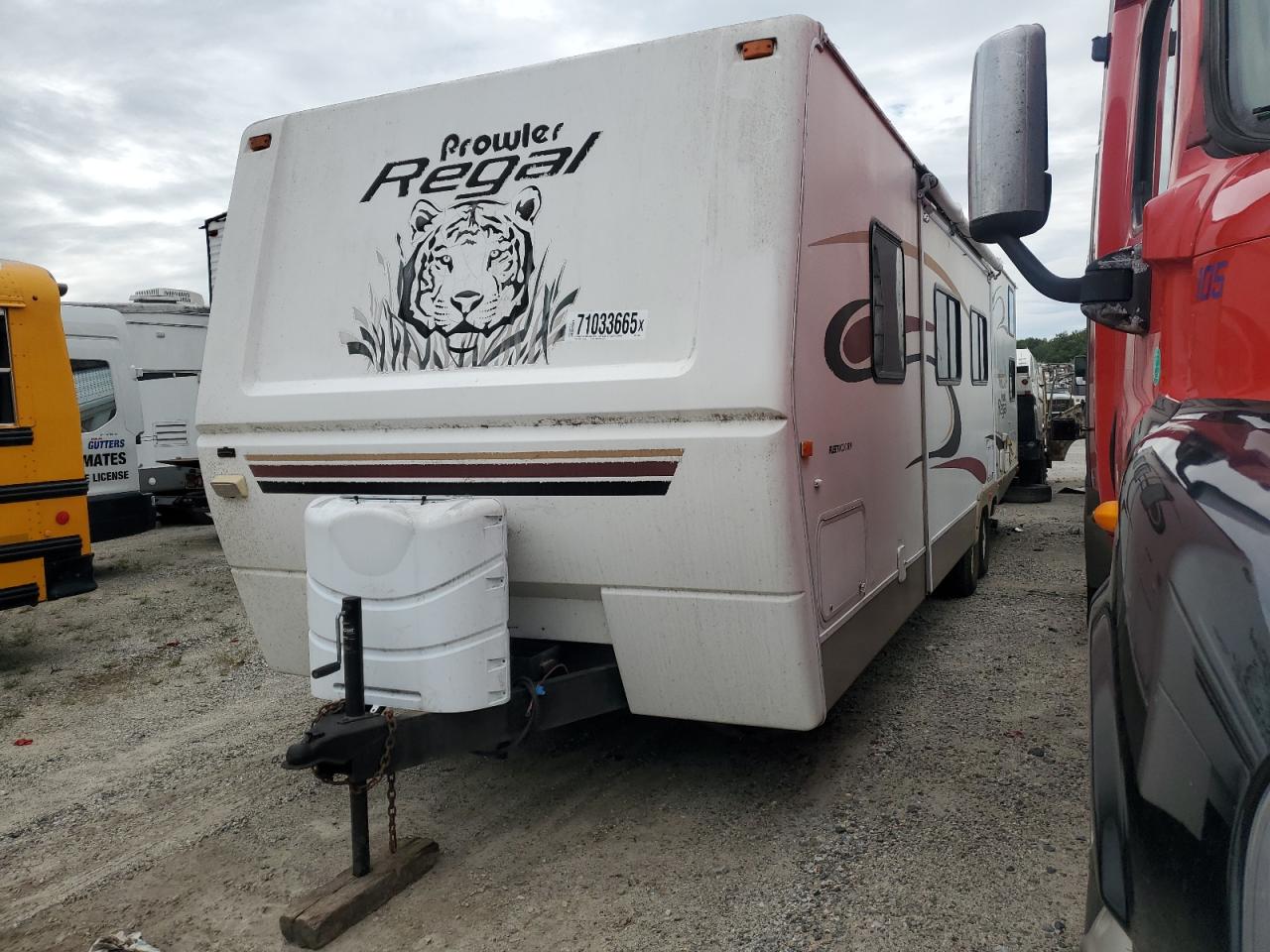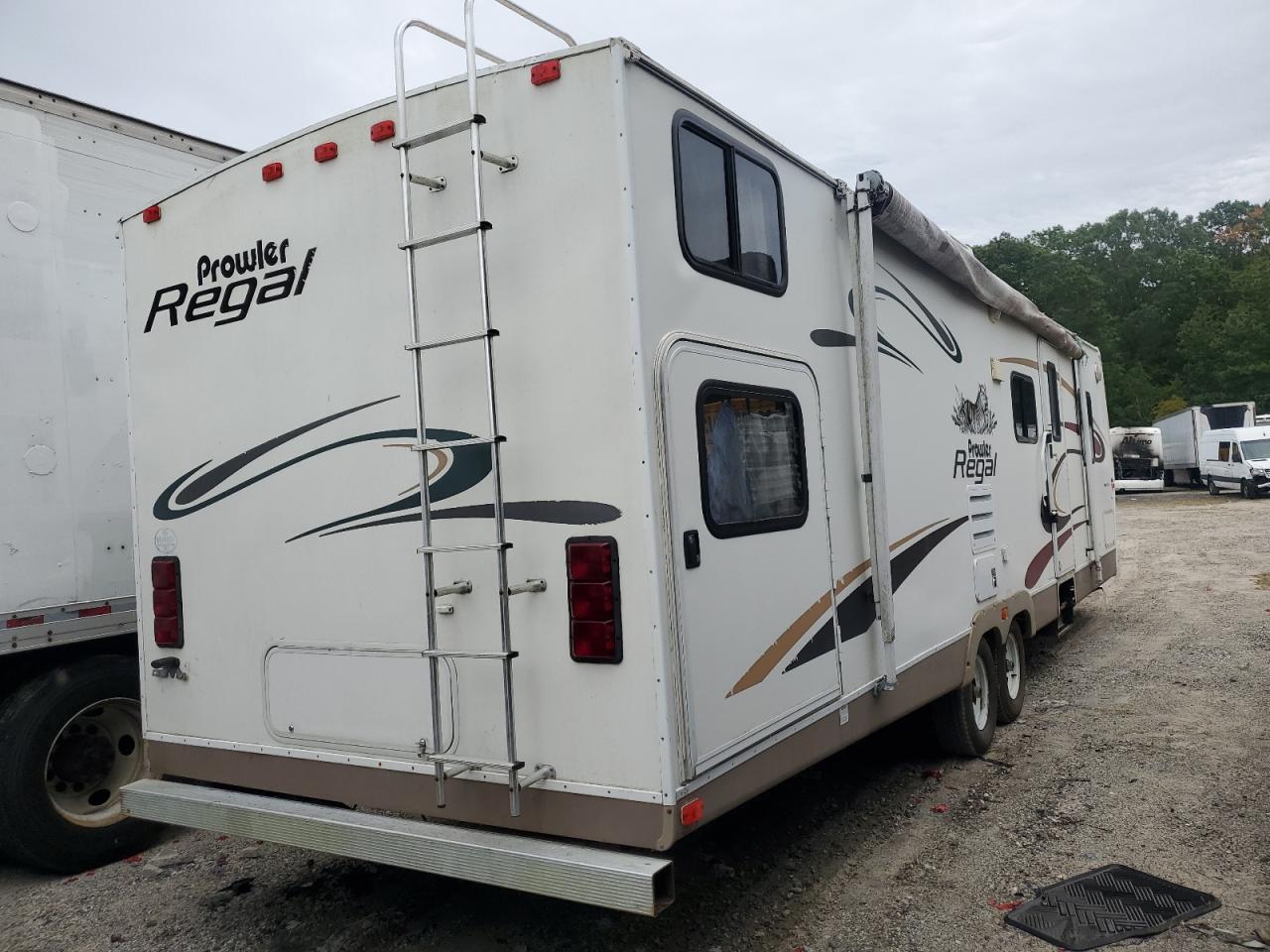GoodThe 2004 Prowler Regal travel trailer exhibits minor cosmetic imperfections. The exterior shows evidence of dents and scratches. The white paint displays some wear. The wheels, lights, and glass appear to be in acceptable condition. The interior shows moderate wear and tear consistent with age and use. There is no visible airbag deployment.